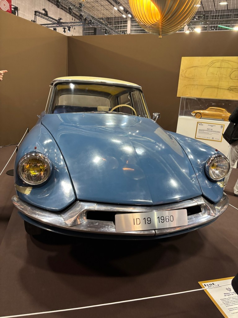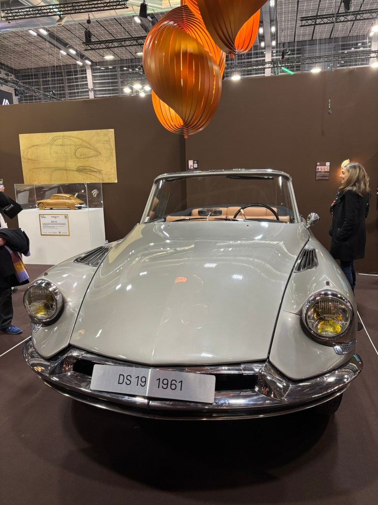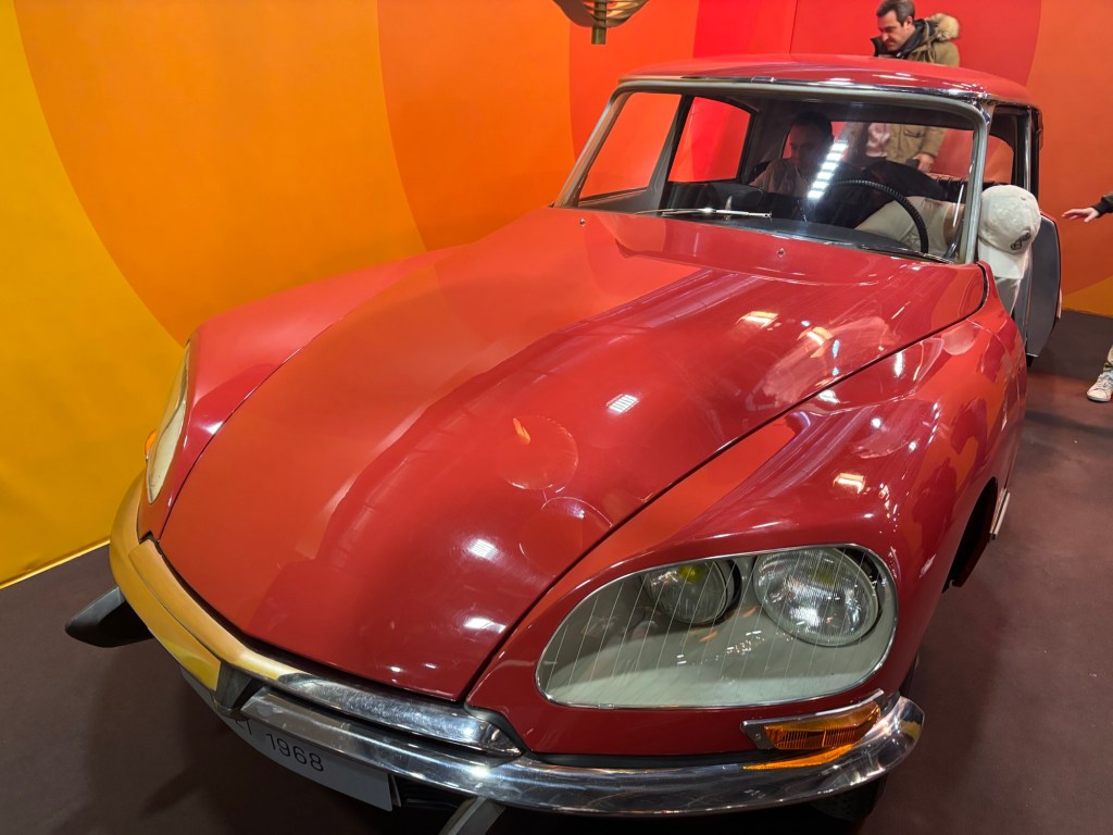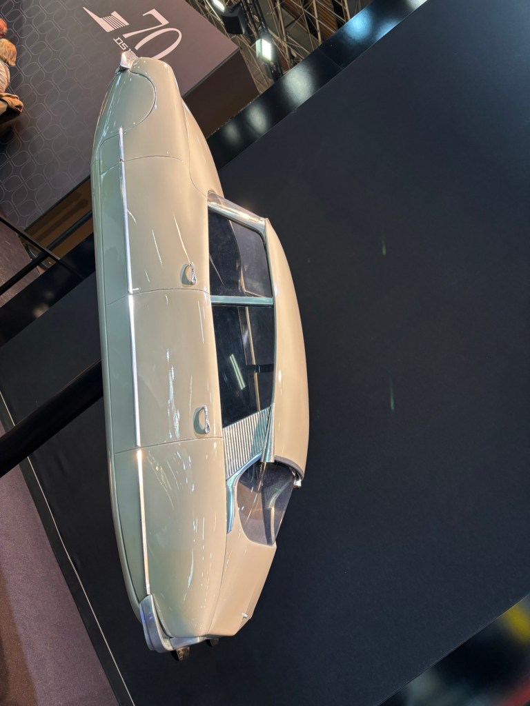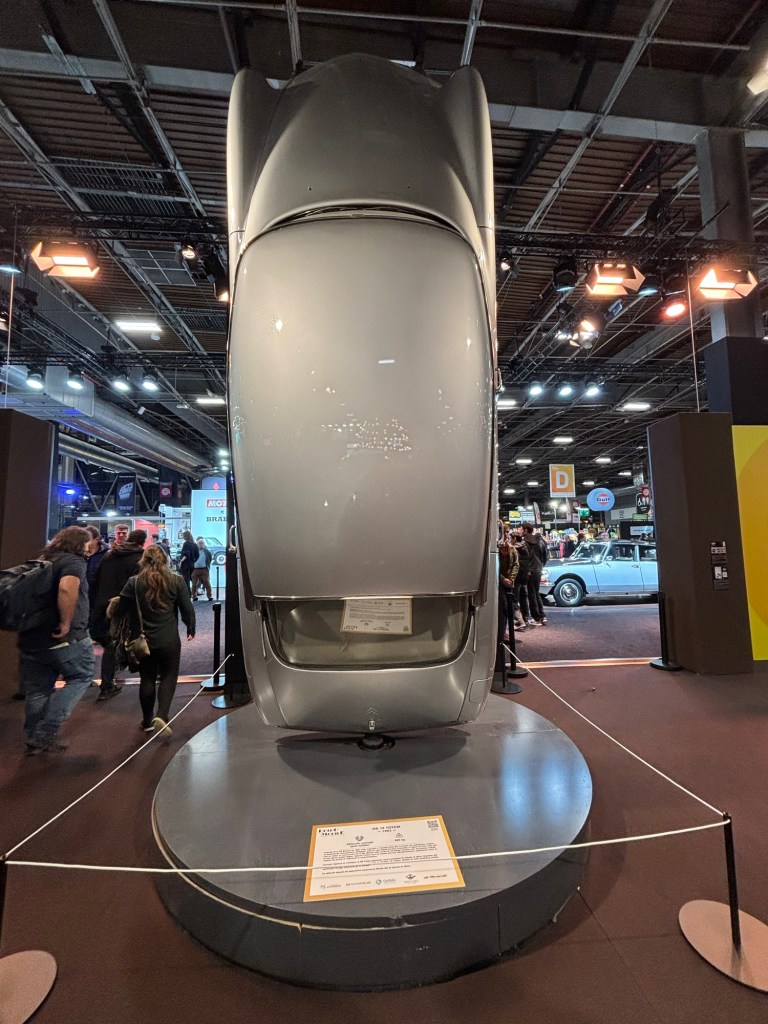 Un petit modèle gris blanc de 1968 (année pas érotique mais révolutionnaire) qui comme une fusée est à l’entrée du stand et vous projette dans le passé !