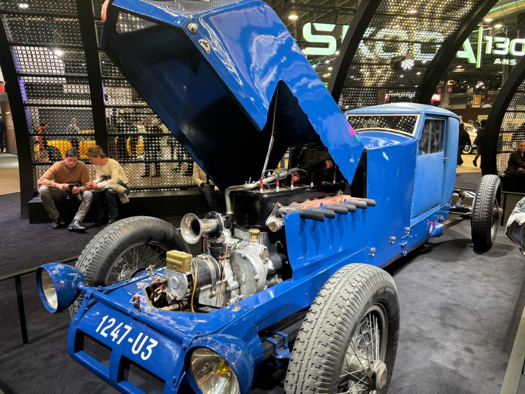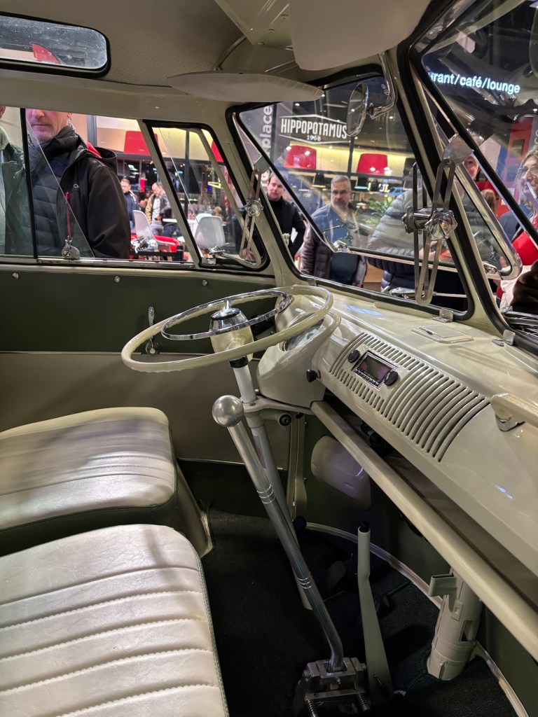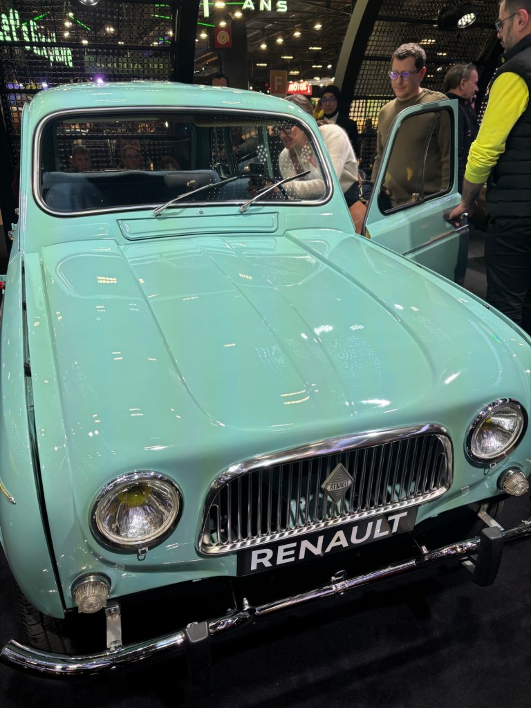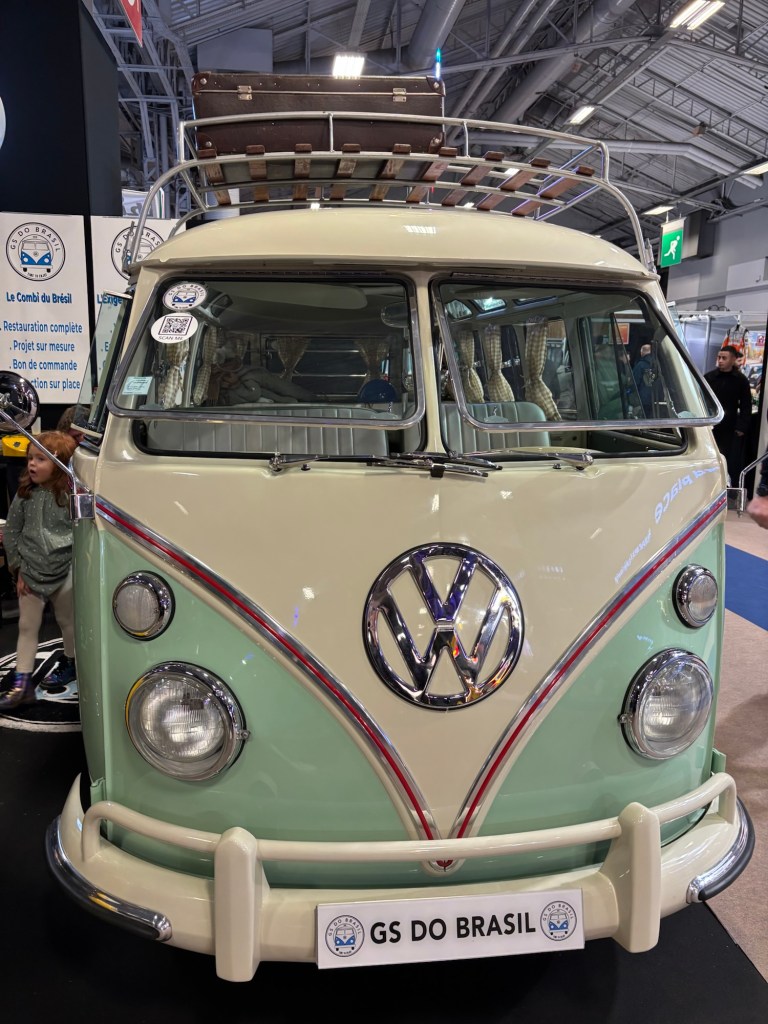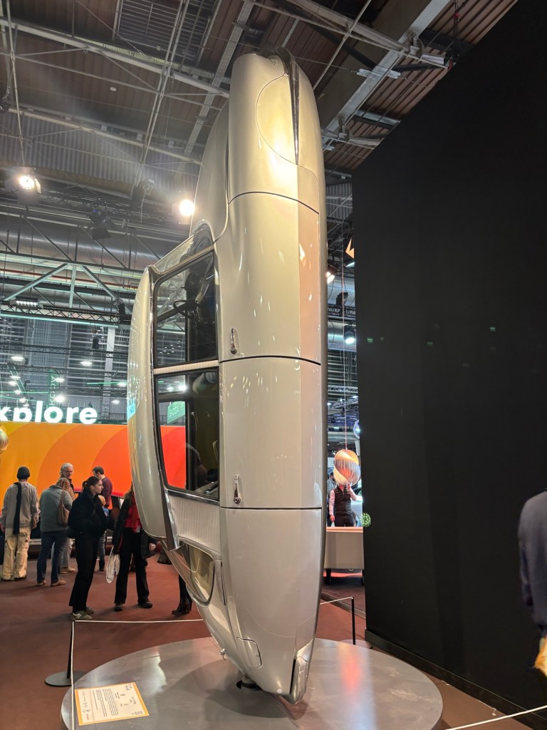 Un petit modèle gris blanc de 1968 (année pas érotique mais révolutionnaire) qui comme une fusée est à l’entrée du stand et vous projette dans le passé !