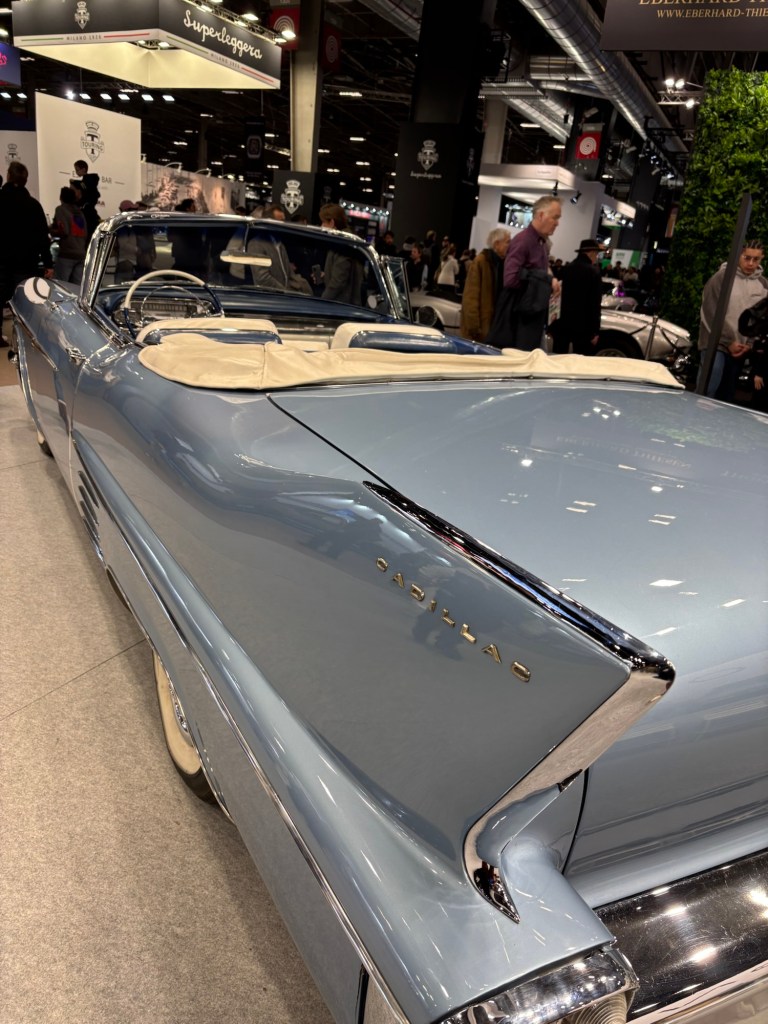 Quant à la Cadillac bleue, elle aussi effilée et un vrai paquebot tant la longueur est incroyable. On se demande où est l’avant de l’arrière et ses ailes font penser à des ailerons de requins !