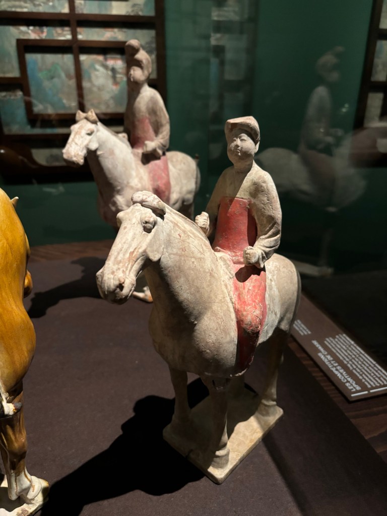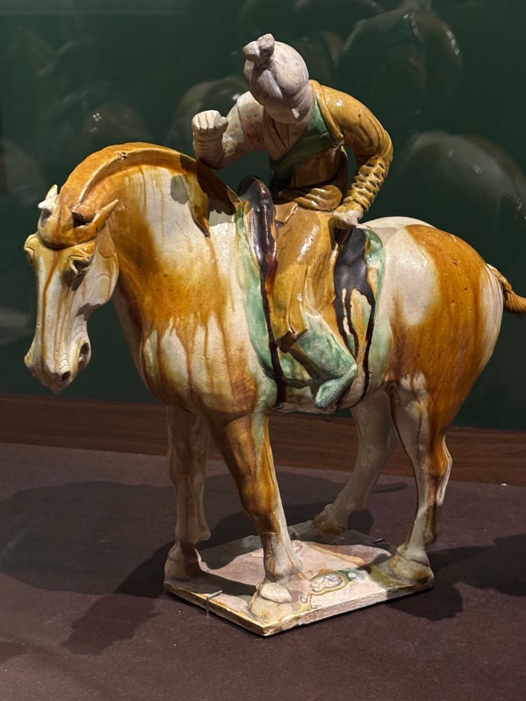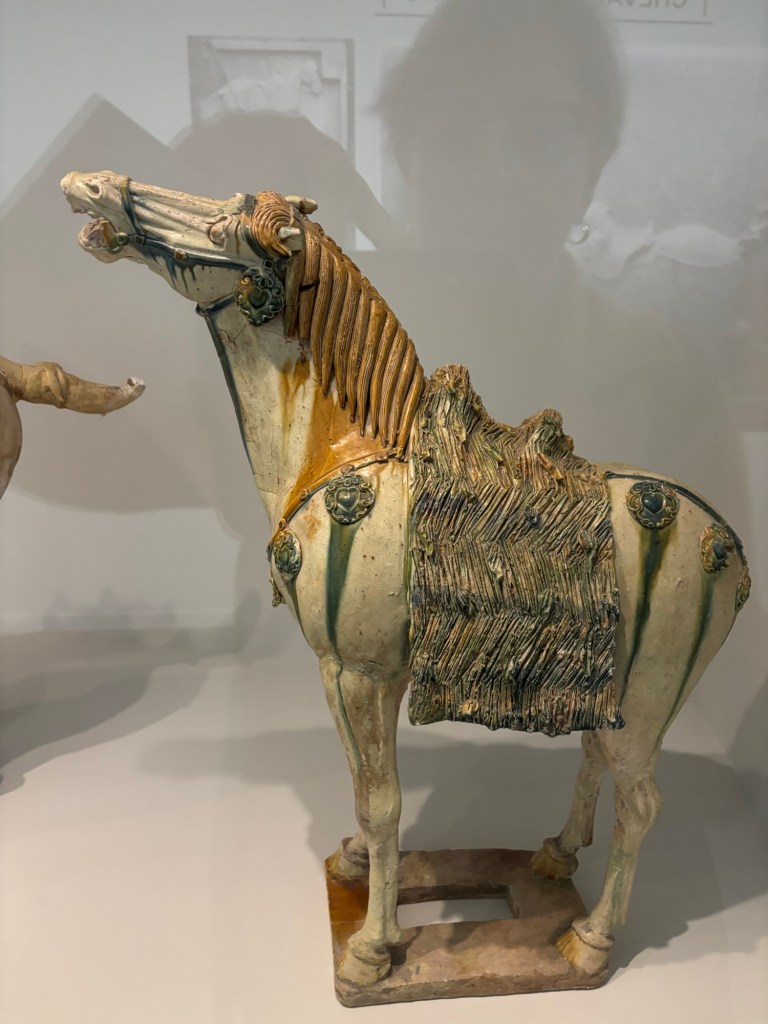 Il est très intéressant de voir un cheval et son cavalier en terre cuite peinte. On voit souvent les chevaux seuls.