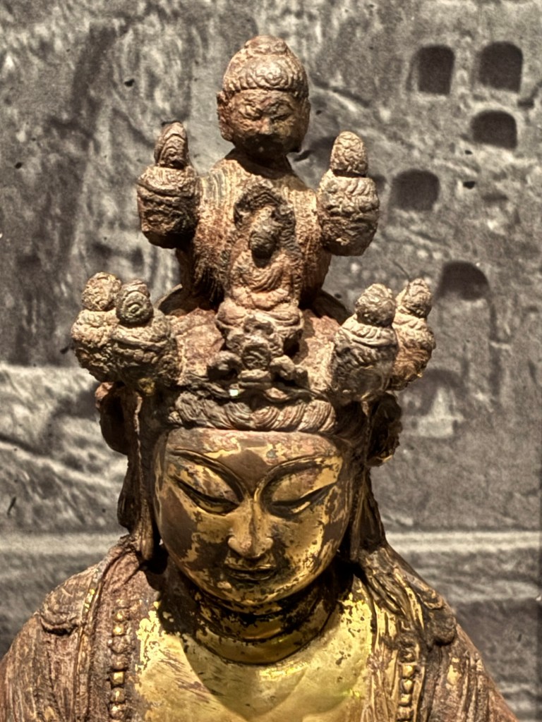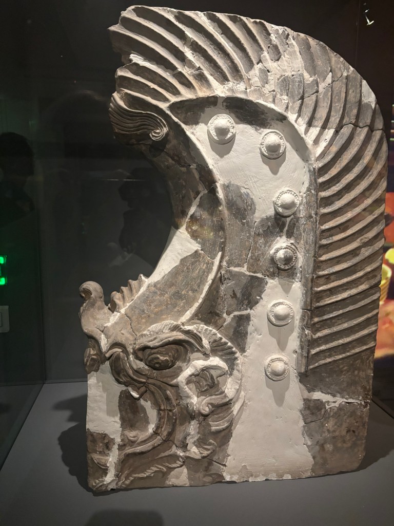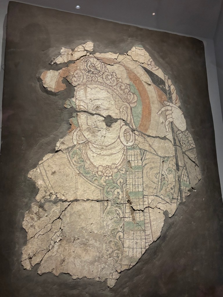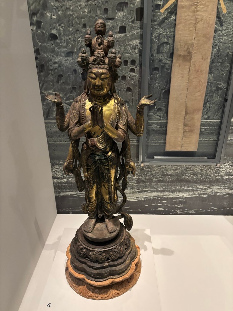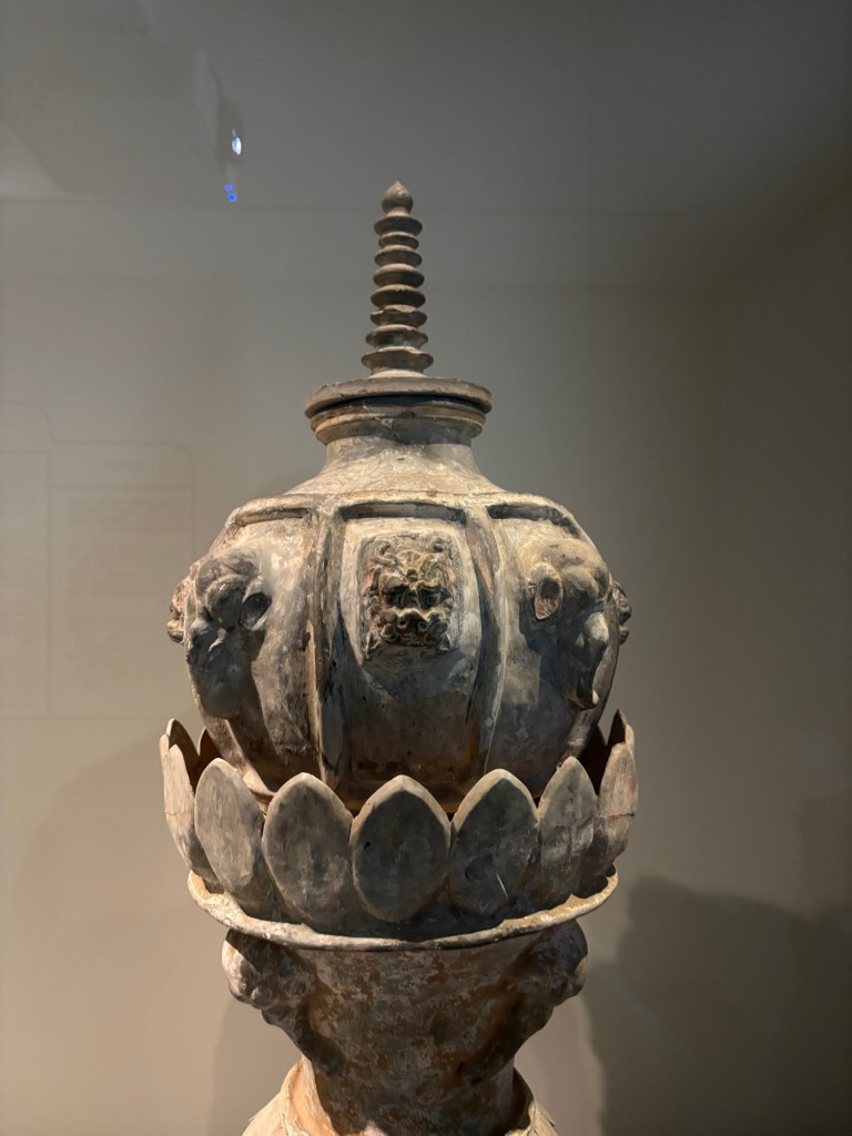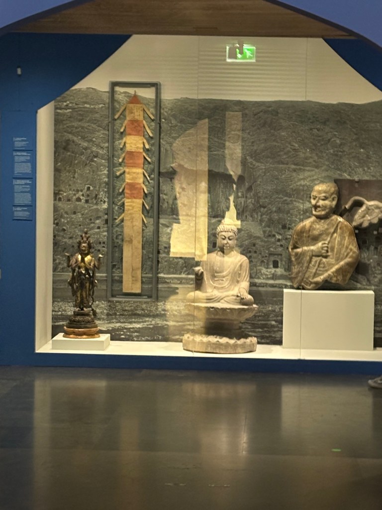 Puis la vie spirituelle vient à nous avec ces Bouddhas ou bien des pots zoroastristes. Car là aussi toutes les religions sont représentées. On peut y voir la place de l’hindouisme qui a permis au bouddhisme de s’implanter en Chine. Deux très belles fresques en sont le témoignage et cette statue de Shiva avec Bouddha sur le dessus de la tête, aussi.
