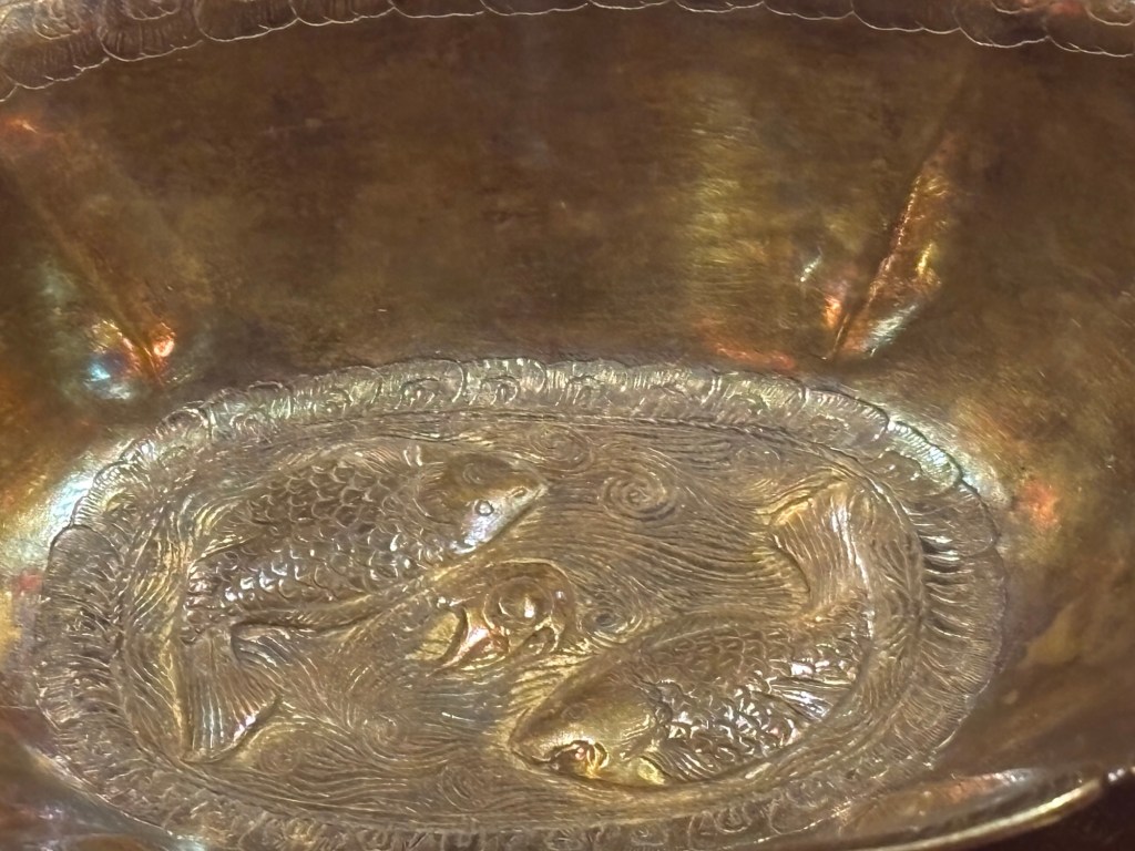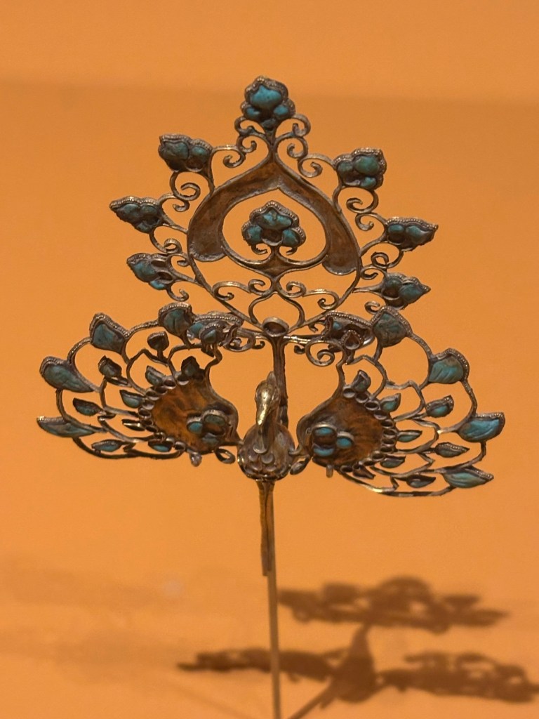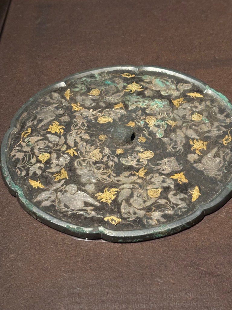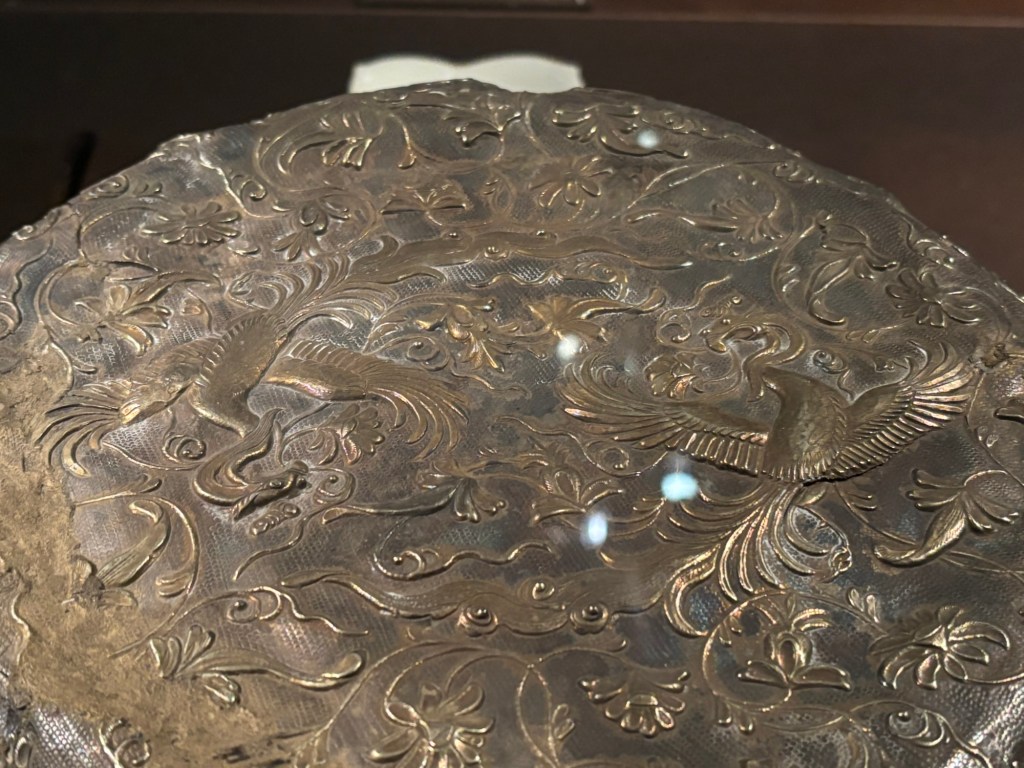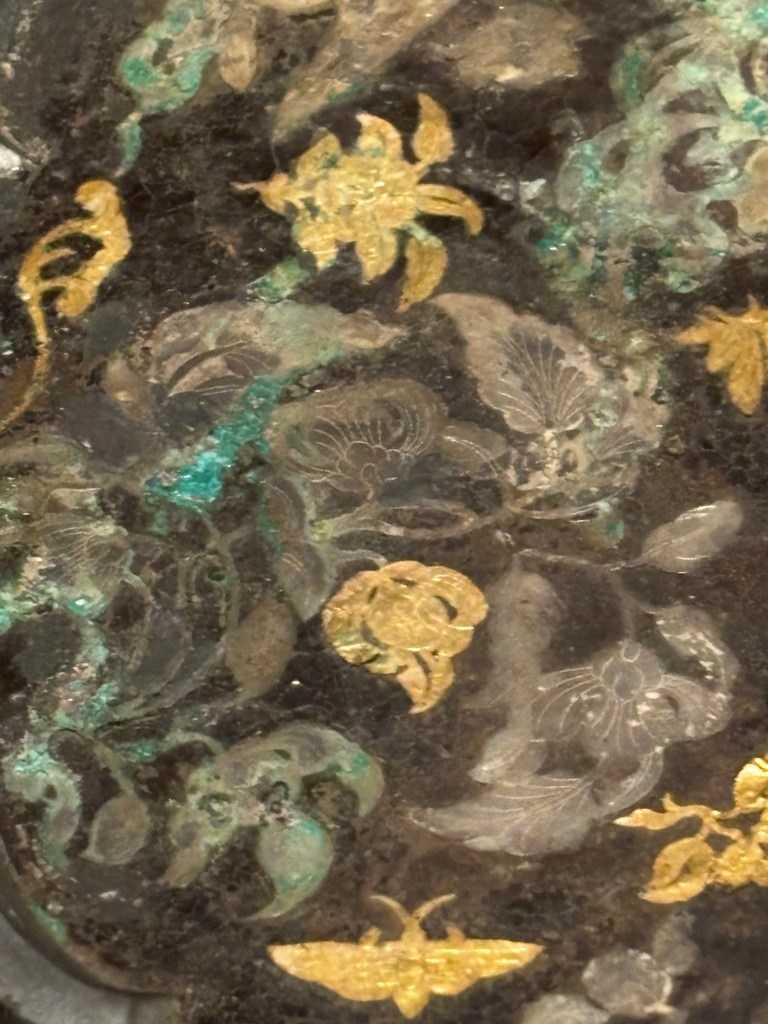 Des morceaux de mur, des boites à thé, des coupes en argent avec des décors de poissons ciselés sur des feuilles de lotus. Des coupes en céramiques avec les fleurs de lotus ou bien des canards.