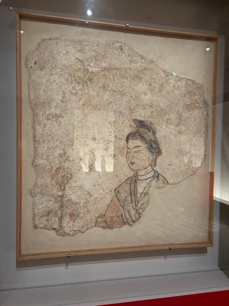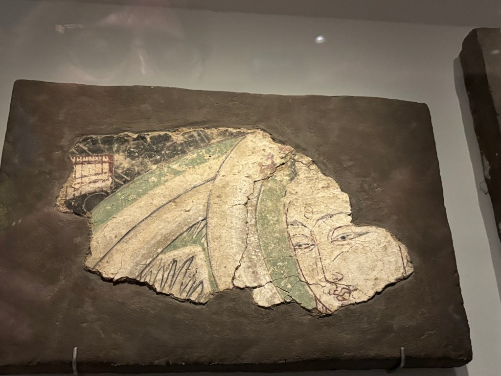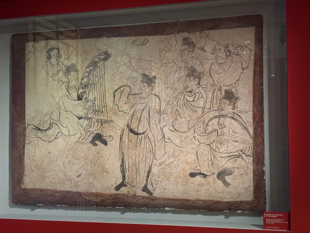 Et les murs sont recouverts de très belles fresques de femmes aux cheveux apprêtés, de danses dans des concerts, de très belles pièces de femmes en terre cuite qui semblent danser et d’autres très droites avec des chignons.