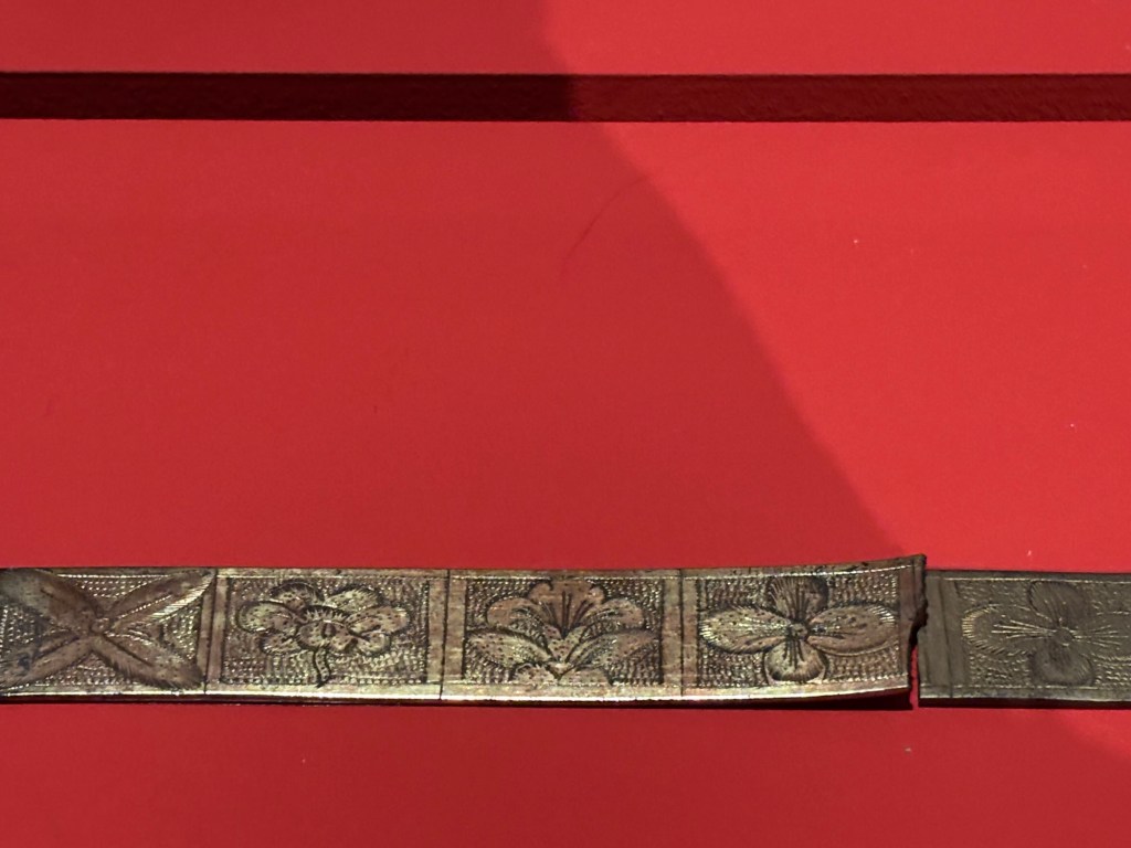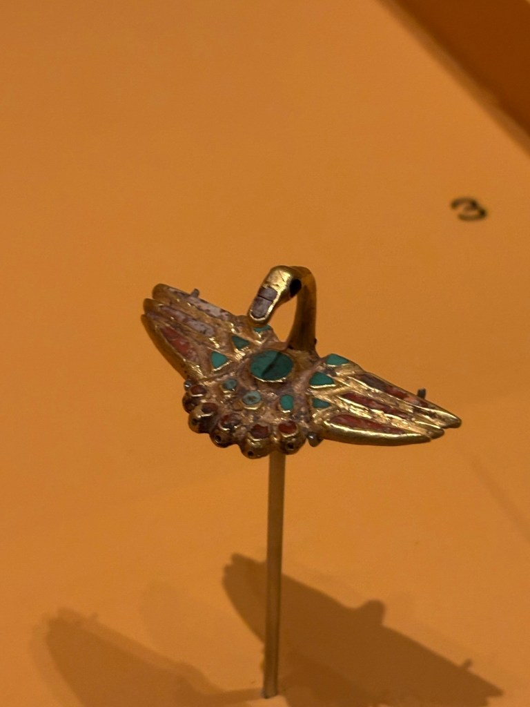 On peut admirer les anneaux des portes en or ou bien les poteries.