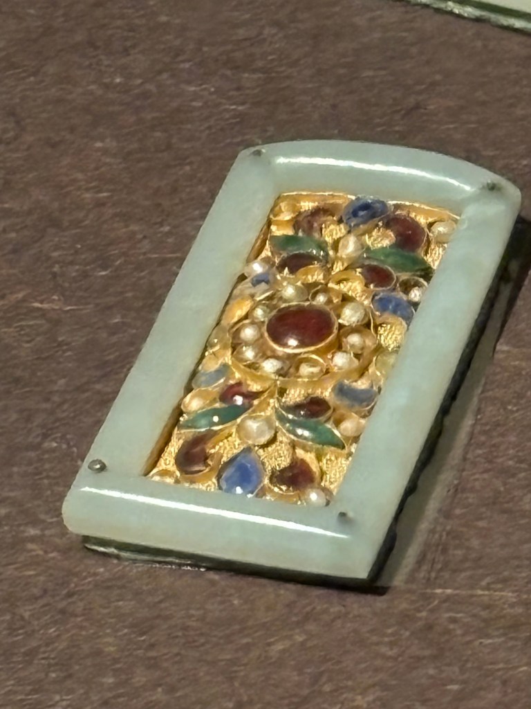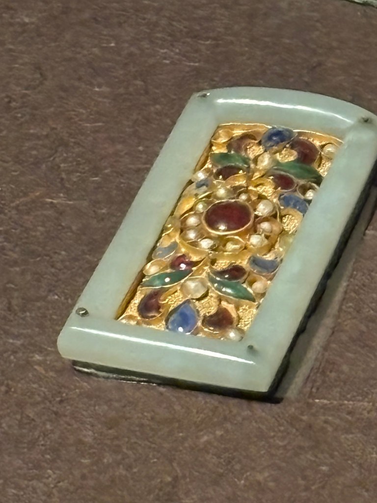 A nouveau des chevaux sur des courses de polo et surtout des objets en jade vert pâle avec des pièces en rubis, perle ou grenat. Elles sont rondes, rectangulaires ou bien dessinées en forme géométrique. Quand on voit la taille réelle on ne peut que rester bouche bée.