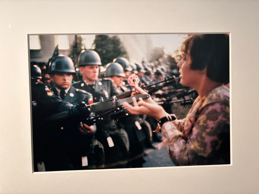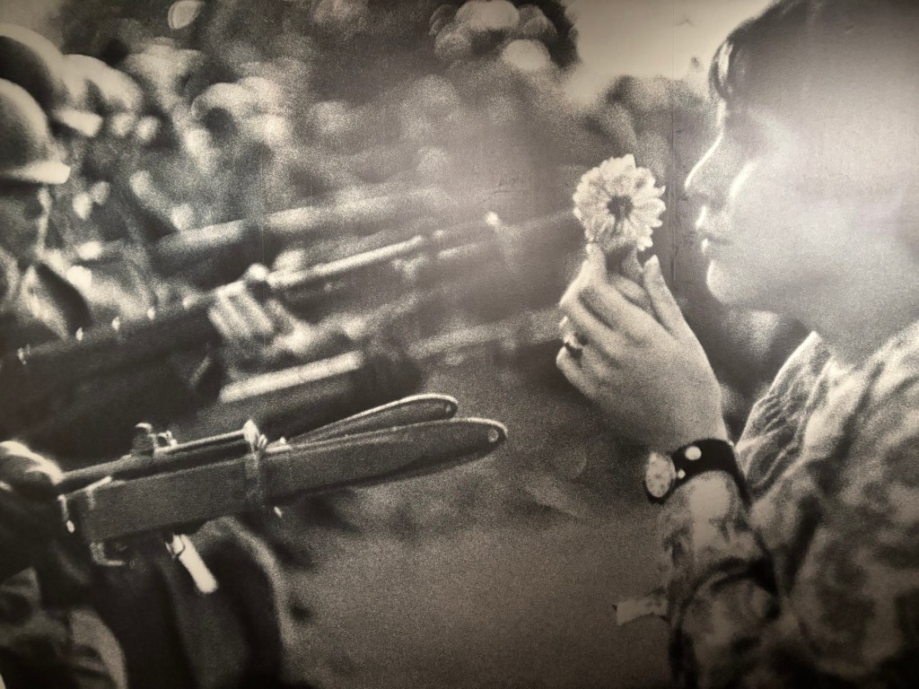 Mais aussi cette femme à la fleur à Washington en 1968 qui pose devant les mitraillettes des militaires américains. Tout est dit : une fleur contre des armes et le silence des armes. On peut d’ailleurs voir les photos différentes prises par Marc Riboud de cette femme dans différentes postures. C’est le rejet de la jeunesse américaine pour cette guerre injuste et surtout sur le besoin de paix. Il s’agit de Jan Rose Kasmir, 17 ans, militante pour la paix.