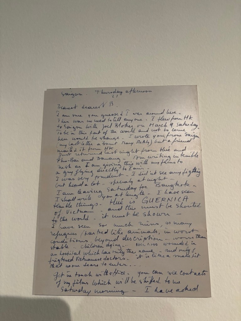 J’ai aussi pris en photo cette lettre de Marc Riboud comparant le massacre d’Hué à Guernica. C’est fort et cela parle à tout le monde. Cela évoque les atrocités commises à travers toutes les guerres dans le monde.