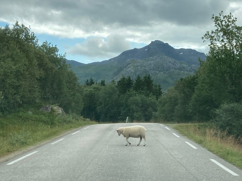 Et puis Lofoten ça veut dire quoi ? Lo veut dire lynx et Fotr c’est le pied. Les iles voudraient ressembler à un pied de lynx si je comprends bien ! Pourquoi pas, on peut tout imaginer. Il faut dire que ces iles au nombre de cinq s’étirent sur 160 kilomètres entre Svolvaer, la capitale et le bout de l’ile avec sa dernière ville Ä, qui se prononce O. Bout du monde étiré mais tellement incroyable avec ses montagnes dignes des Alpes, ses fjords à peu près partout, ses lacs intérieurs et la mer partout. On peut très bien imaginer le lynx posant délicatement dans la neige et étirant sa patte de devant.