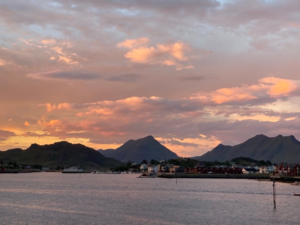 Ça vous fait tout drôle et bien à moi aussi ayant voyagé en Islande où en hiver le jour apparait juste de 11 à 14h ! Eh bien en été la nuit n’existe pas aux iles Lofoten. Il fait jour tout le temps ! Impressionnant !