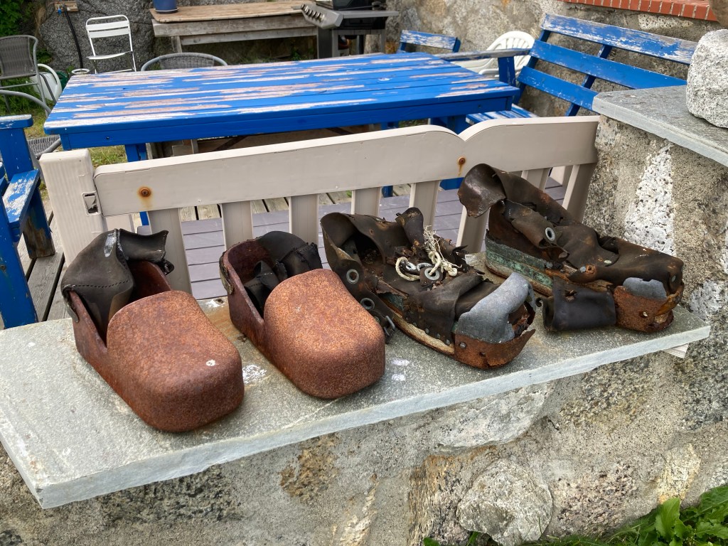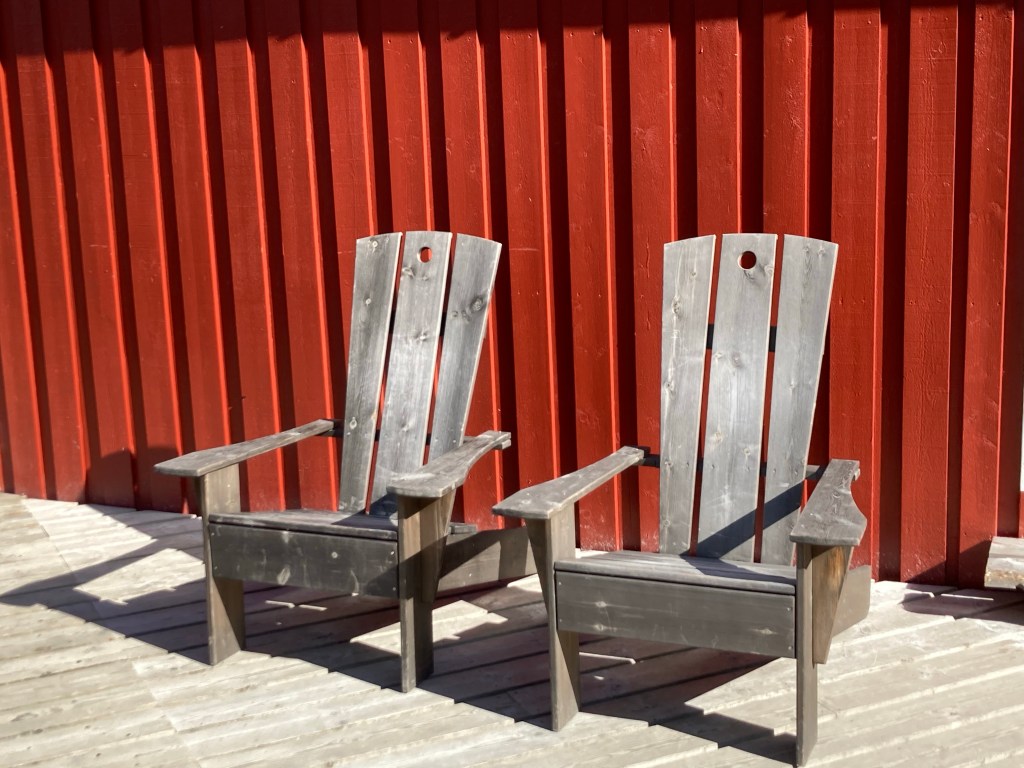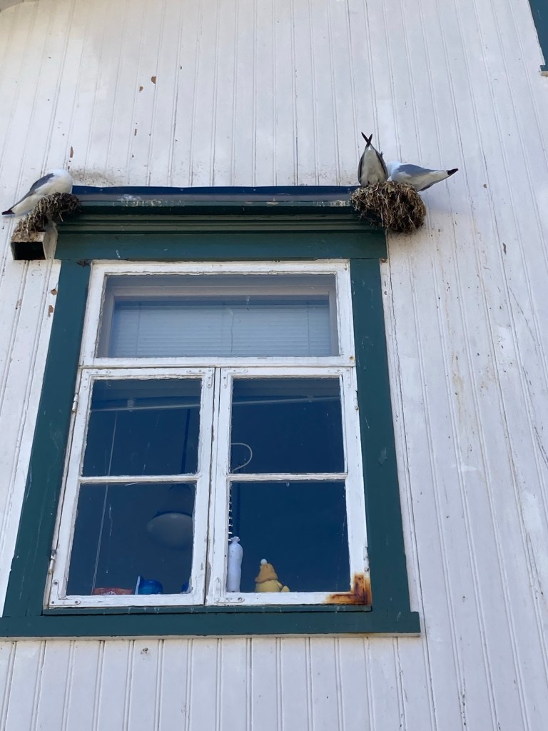 Et il y a la mouette qui vous regarde droit dans les yeux qui ne bouge pas et attend, on ne sait quoi ! Elle a moins d’humour la mouette – c’est moi qui vous le dis et pour la chasser il faut vraiment se fâcher ! Et celles qui ont nidifié sur les rebords des fenêtres et qui crient à tout bout de champs pour protéger leurs oisillons et vous chient dessus et le long des murs en bois des maisons. Un vrai bonheur.