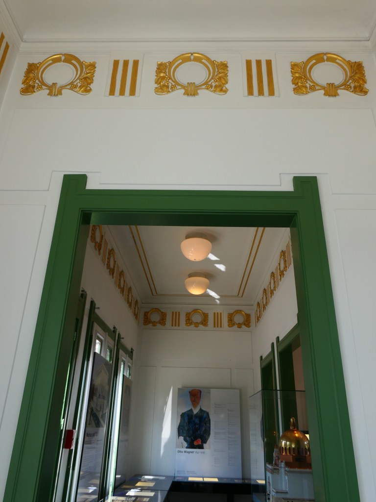 Juste pour rappel Otto Wagner (1841-1918) fut l’architecte en chef de la Wiener Stadtbahn, un métro urbain léger en grande partie aérien. C’est en 1898 qu’il construisit, avec son élève Josef Maria Olbrich, deux pavillons identiques pour la station de métro qui ouvrit en 1899 sous le nom d’Akademiestraße et qui est maintenant connue sous le nom de Karlsplatz.