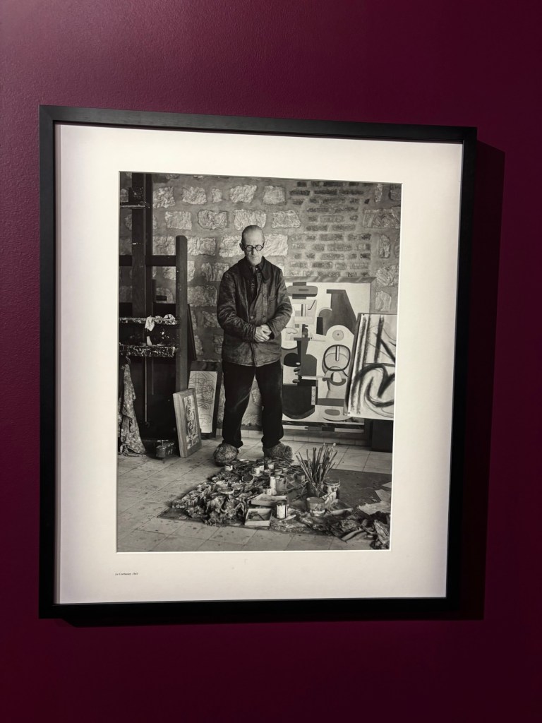 Et puis nous passons aux photos d’artistes plus ou moins connus comme Lurçat avec ses toiles d’Aubusson ; Jean Dubuffet et Bernard Buffet ; Nina Léger dans l’atelier de Fernand Léger avec ses élèves ; Sempé qui disparait dans ses dessins ; Giacometti dans son atelier qui le regarde comme l’interrogeant ; Et Niki de Saint Phalle avec ses Nanas. Picasso et sa tunique orange comme un toréador et Le Corbusier et ses toiles.