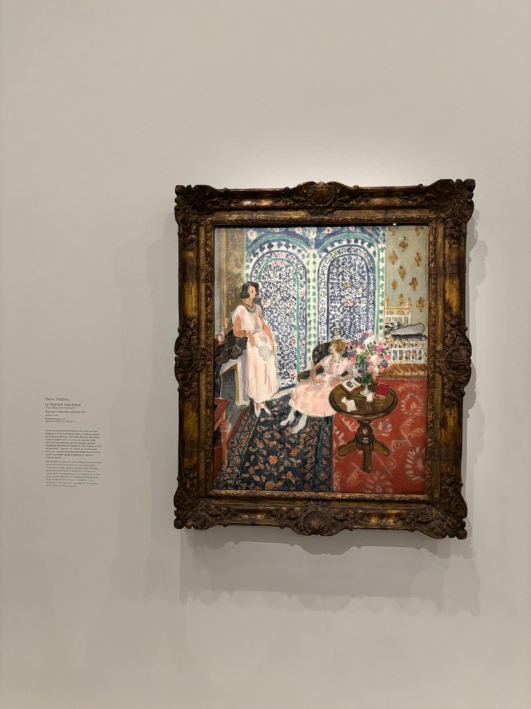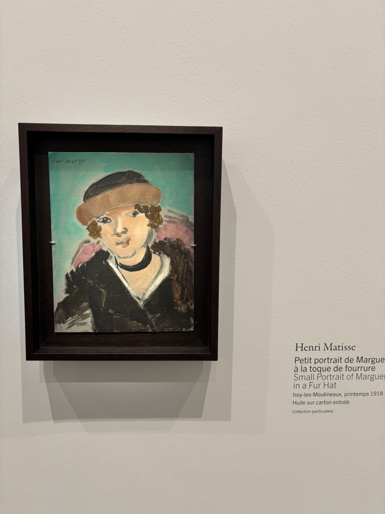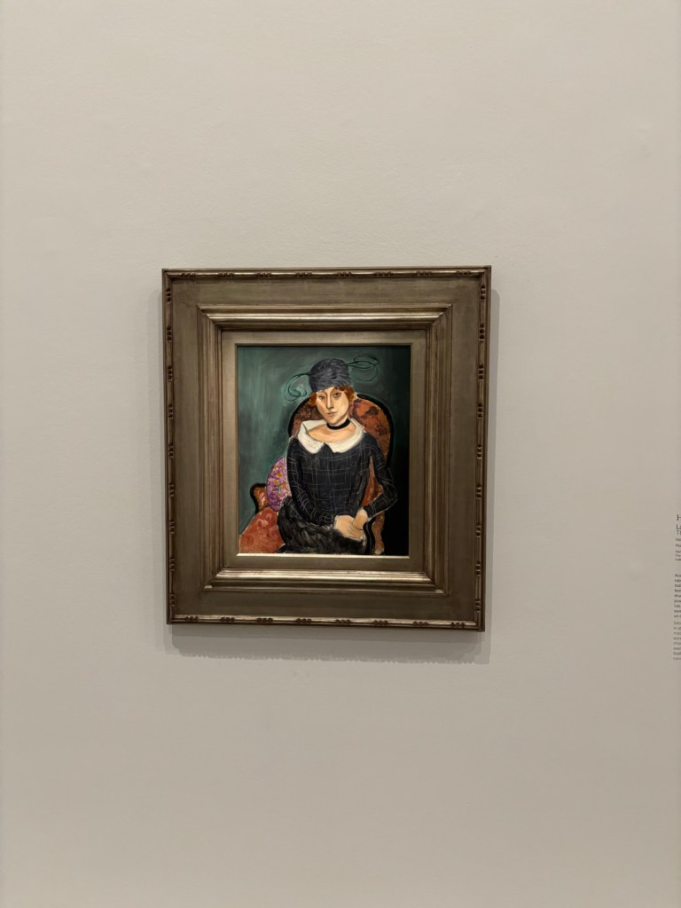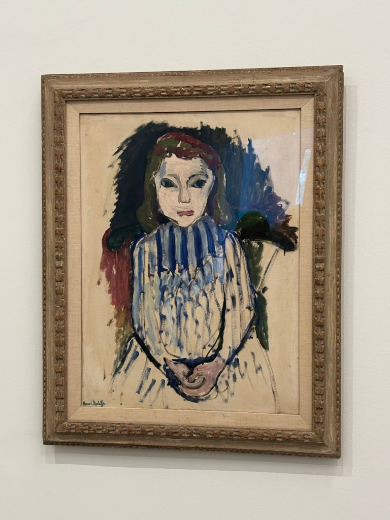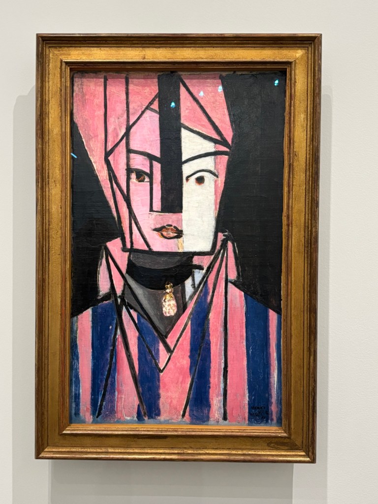 Il y a un portrait incroyable celui rose cubiste où le visage est déstructuré. Toujours le ruban noir avec un bijou et cet habit qui fait penser à un pyjama de tolard. Il est à contre-courant complet de toute l’œuvre de Matisse et ne trouvera jamais preneur car trop précurseur. Je suis restée en arrêt devant cette œuvre !