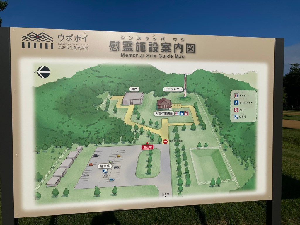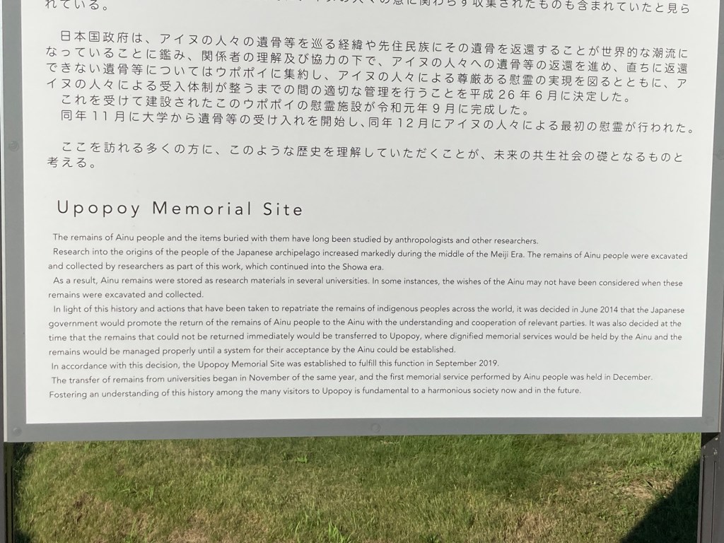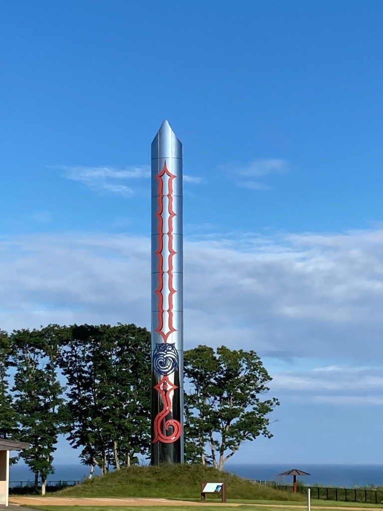 A l’extérieur du musée, à un kilomètre de distance, sur un promontoire, se trouve un site de mémoire pour les aïnous avec des totems et des maisons de prières. Il est tourné vers le Pacifique et offre une vue extraordinaire.