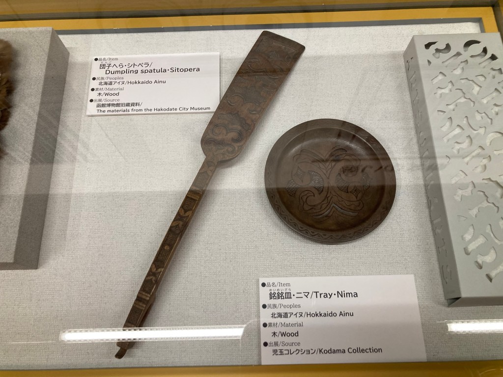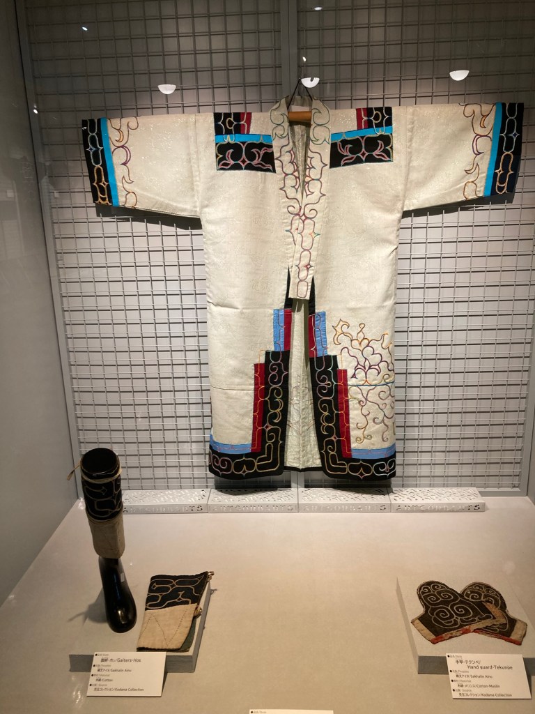 Le magnifique de cette collection est la richesse sur deux étages des habits traditionnels des aïnous tant en coton qu’en peaux de bêtes (phoque) et les œuvres réalisées sur du bois, des dents de phoque ou bien en ivoire mais aussi les bijoux portés par les femmes. C’est un très grand témoignage sur ces peuples du nord.