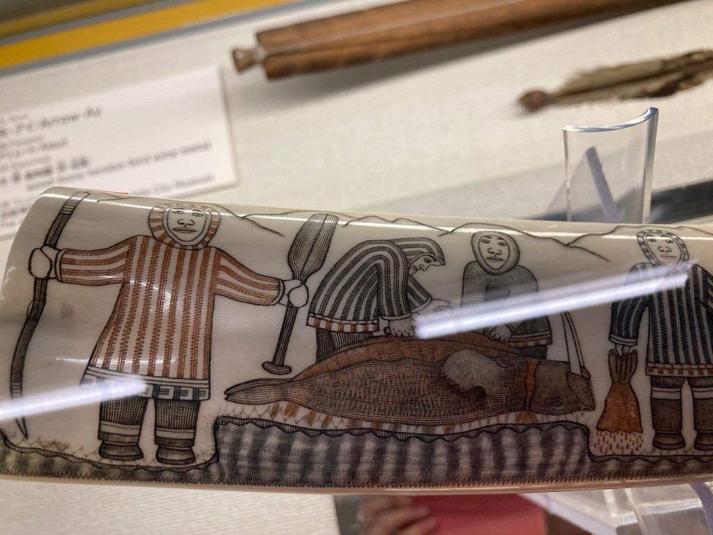 Parallèlement on y découvre aussi des objets quotidiens comme des plateaux ou des objets culinaires. Mais aussi le travail sur l’ivoire des phoques ou bien des éléphants de mer.