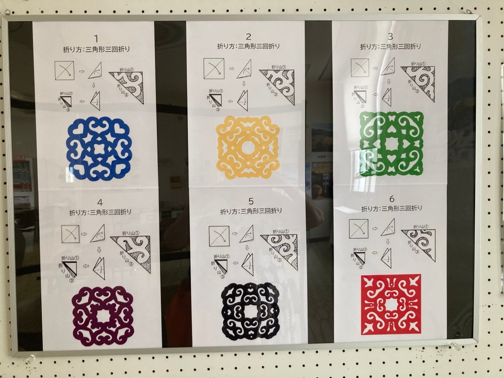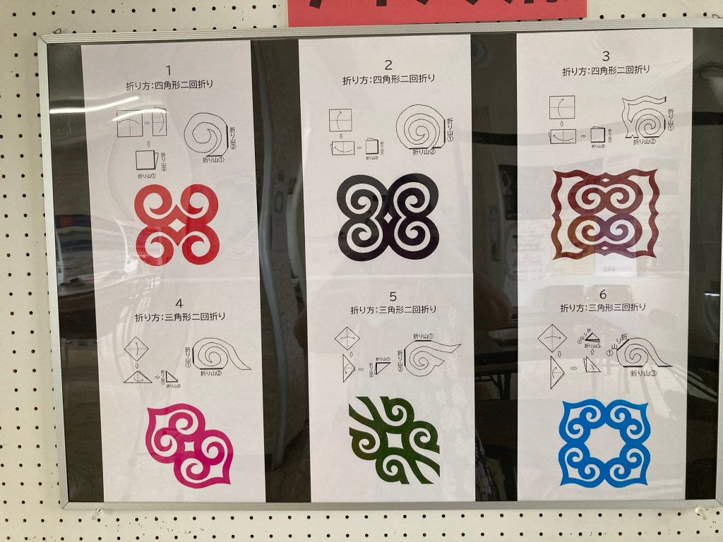 De très beaux découpages de papier nous présentent aussi les dessins rituels des aïnous.