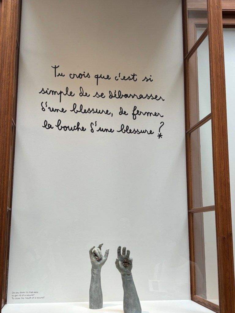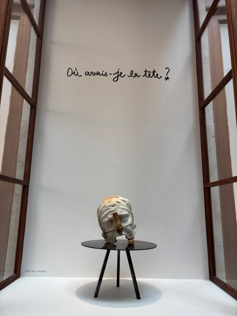 Puis j’ai erré dans les couloirs pour regarder les œuvres des différents artistes. Certains ont frappé mon esprit en particulier avec les textes adjacents : Où avais-je la tête ? ; Tu crois que c’est si simple de se débarrasser d’une blessure…