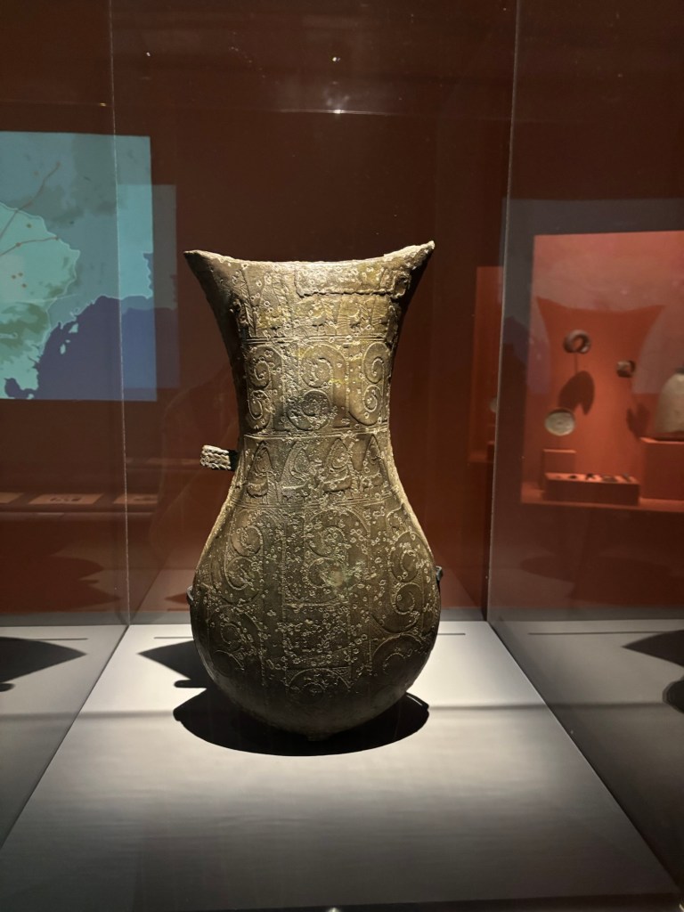 Tout d’abord le travail du bronze avec ces différents objets comme les cloches, les vases ciselés, les bracelets ou le tambour.