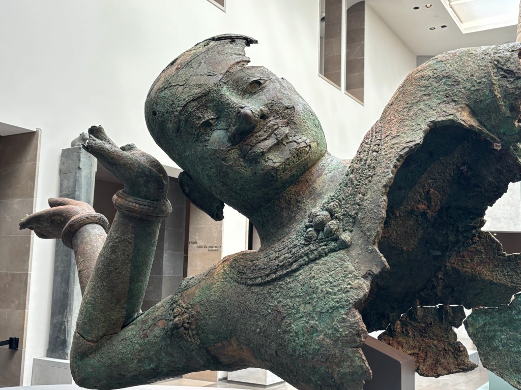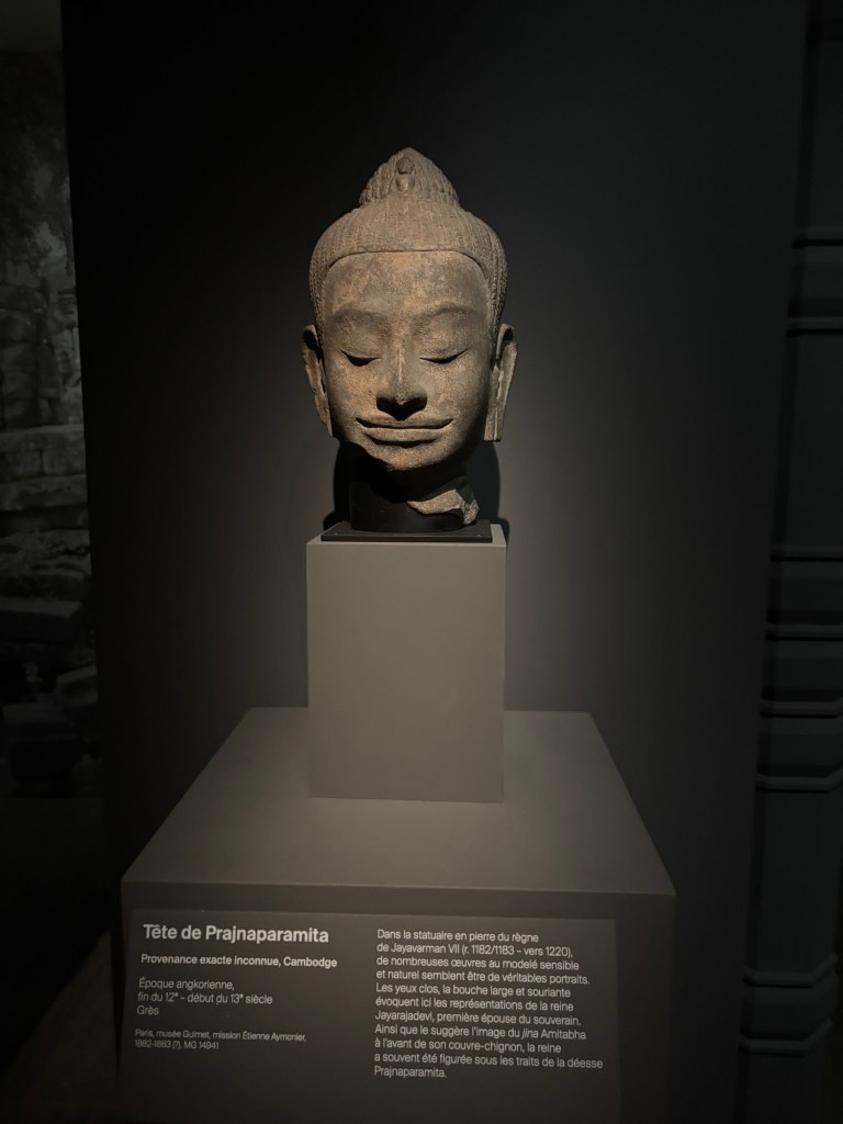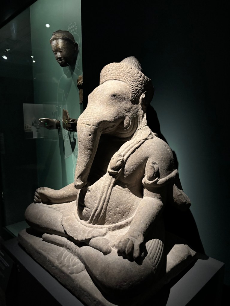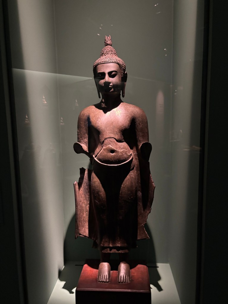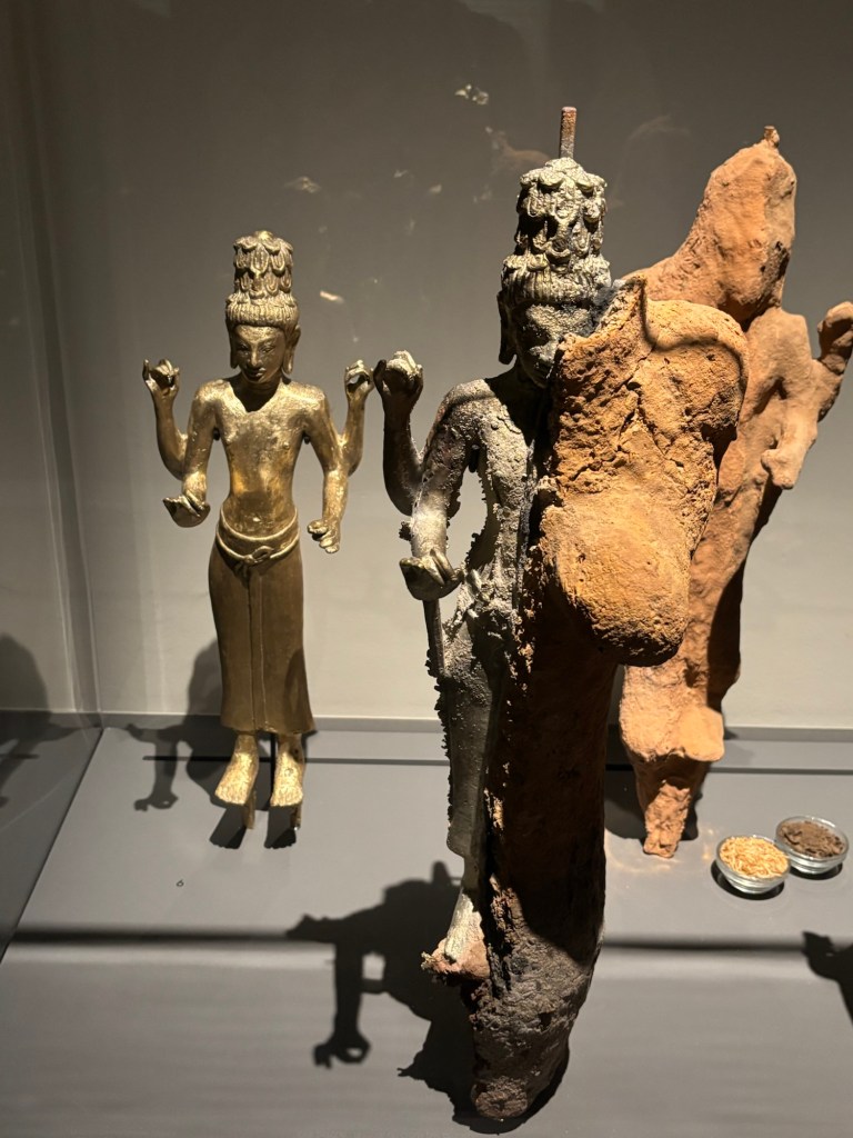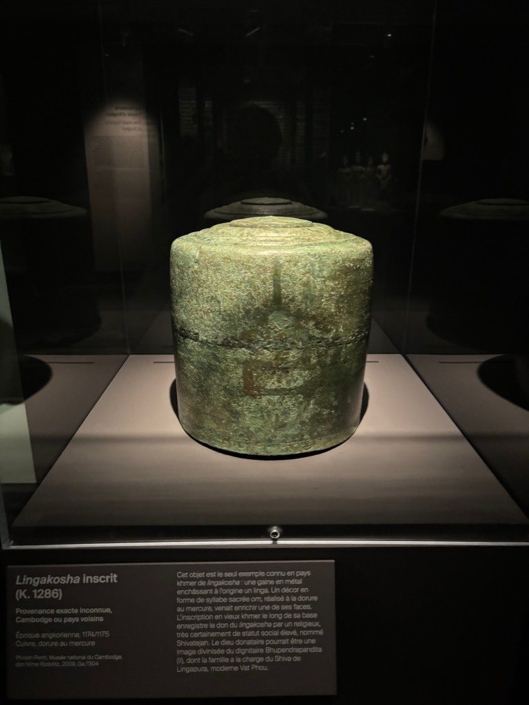 Cette exposition était consacrée aux bronzes royaux et à l’art divin des Khmers. Divins car nous errons entre le bouddhisme et l’hindouisme qui ont une ampleur particulière à Angkor Vat et qui nous présente le syncrétisme de ces deux religions.