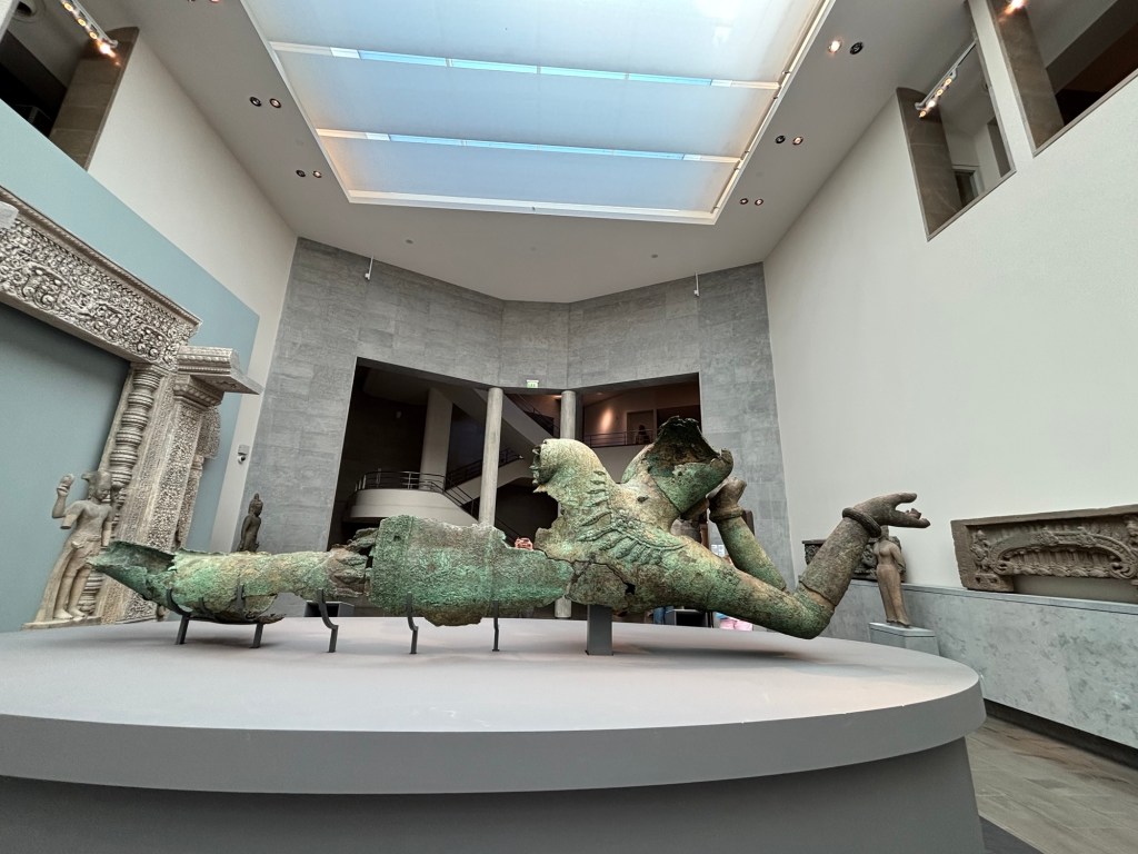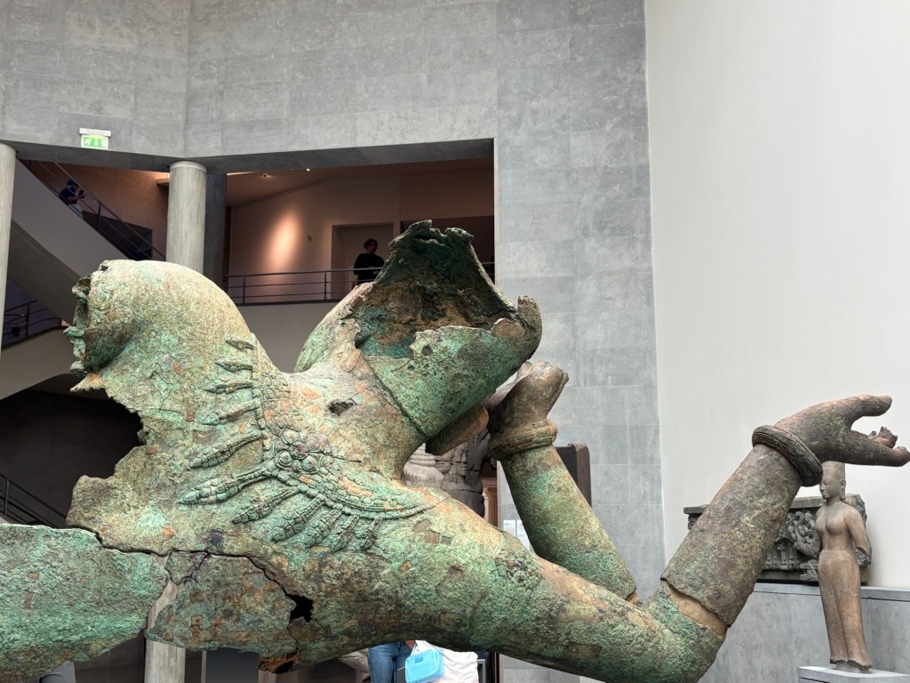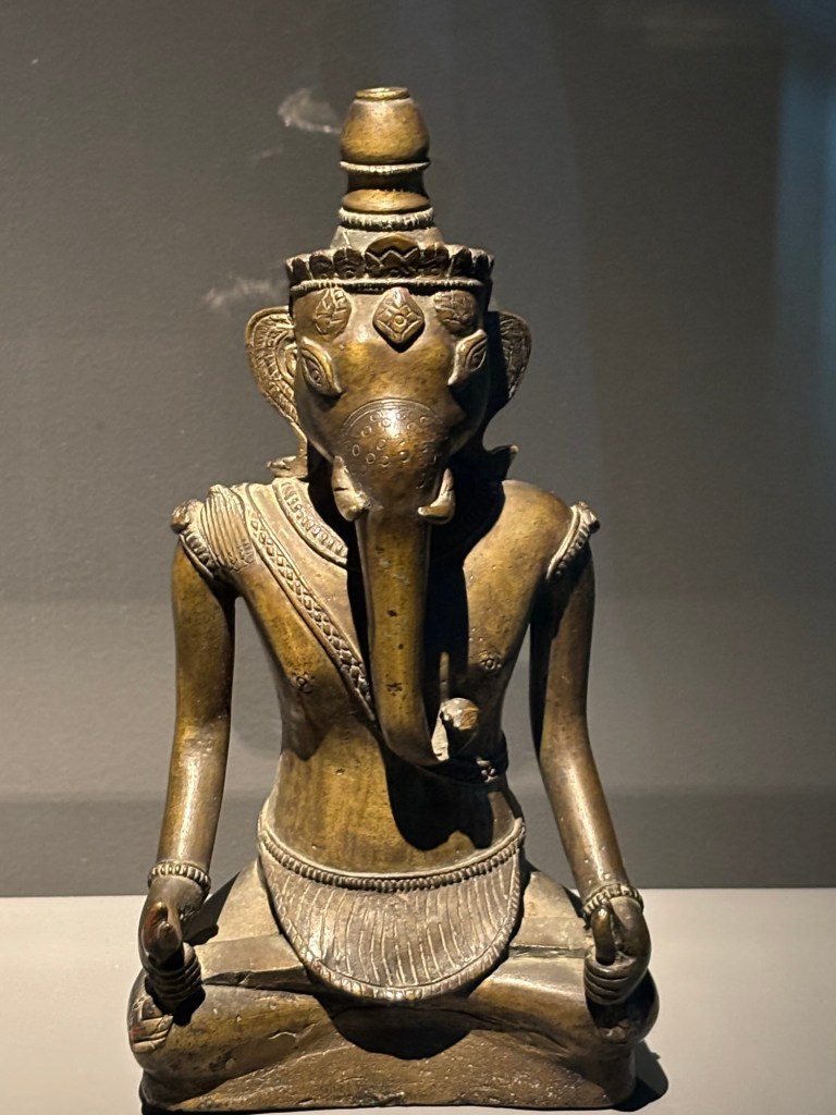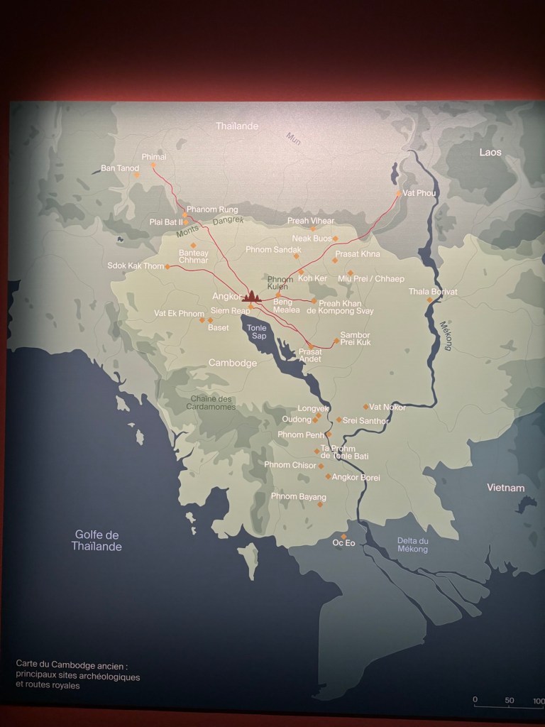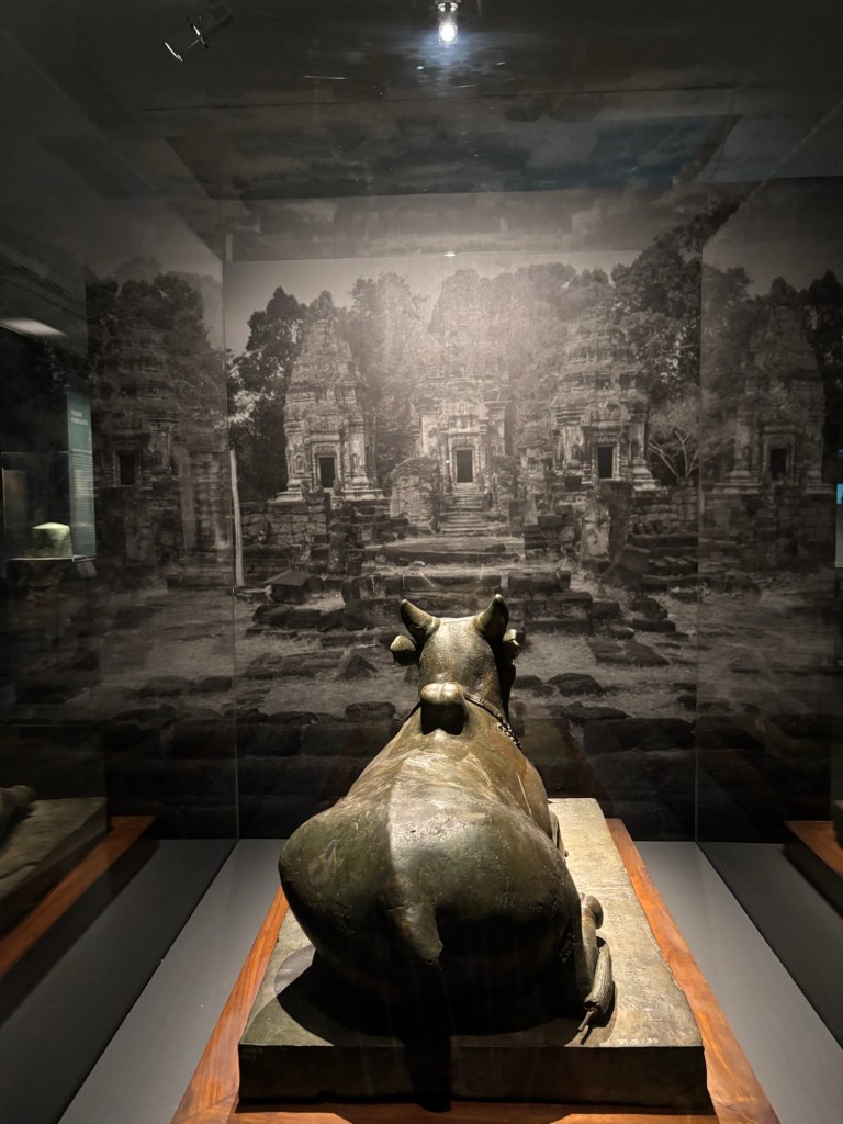 Cette exposition était consacrée aux bronzes royaux et à l’art divin des Khmers. Divins car nous errons entre le bouddhisme et l’hindouisme qui ont une ampleur particulière à Angkor Vat et qui nous présente le syncrétisme de ces deux religions.