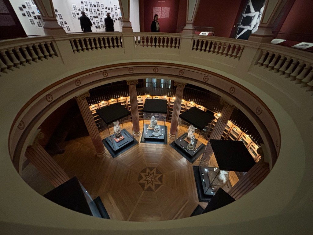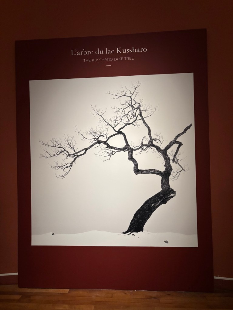 Après on fait le tour de la bibliothèque du musée Guimet dont on peut admirer les cariatides et on peut se plonger dans des photos tirées en grand avec le Tori japonais, l’arbre du lac de Kusharo et bien d’autre comme Ai qui tient le monde dans ses bras.