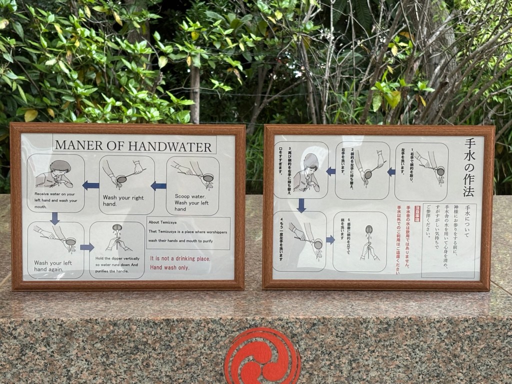 Puis poussant plus loin mes pas je suis tombée sur un premier temple qui était devant un lac et un magnifique jardin. Un pont orange permettait de s’approcher de ce temple et surtout le joli lieu pour se purifier avant d’aller prier. Pour moi ces lieux sont toujours magiques avec leurs cuillères à manche long, les longs bambous où ils reposent et surtout cette eau qui coule en permanence et remplit un bac en pierre où des inscriptions en japonais vous font face. Ne me demandez pas ce que cela signifie je ne le sais pas.