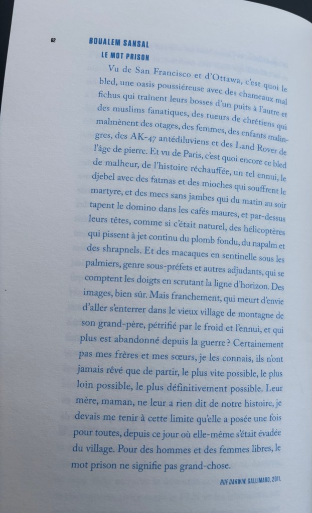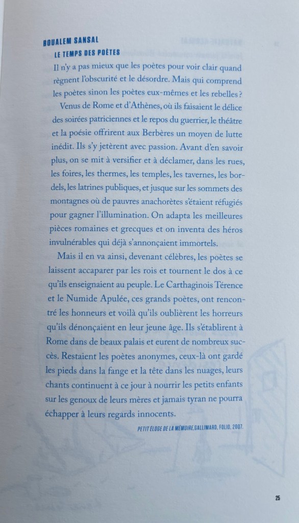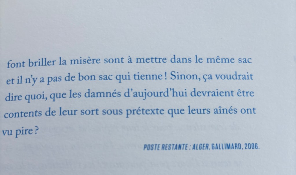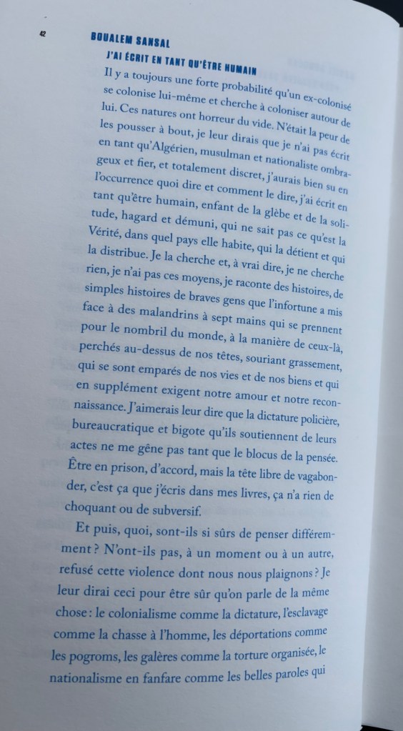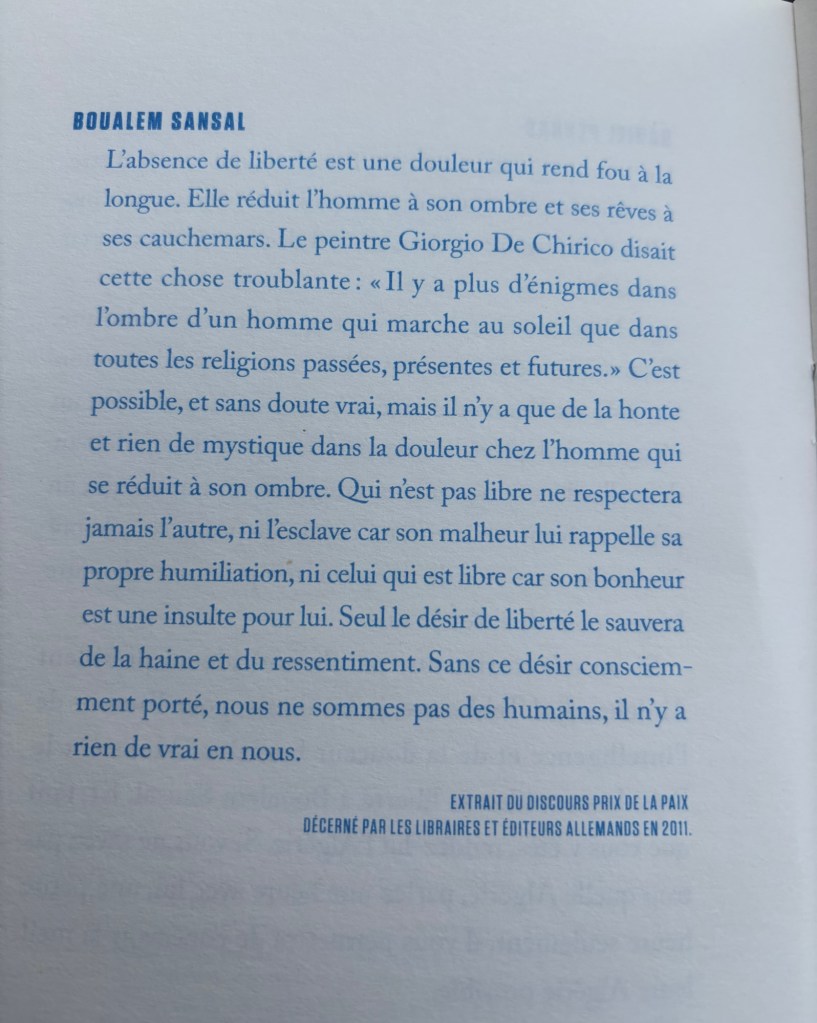 Bonne lecture des extraits de B. Sansal. Et celui de Camus à Stockholm. Et surtout ne l’oublions pas !