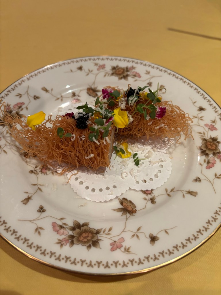 Petit restaurant où il faut réserver, le diner est réparti en huit plats (choix de ma part). C’est un festival de saveurs. Chaque assiette avec son décor correspond à un plat. On a alors une harmonie entre les mets délicieux présentés. C’est le royaume des sens. La cuisine est japonaise mais inspirée de la française pour en faire un mix. Produits du jour achetés localement. Donc à chaque jour son improvisation.