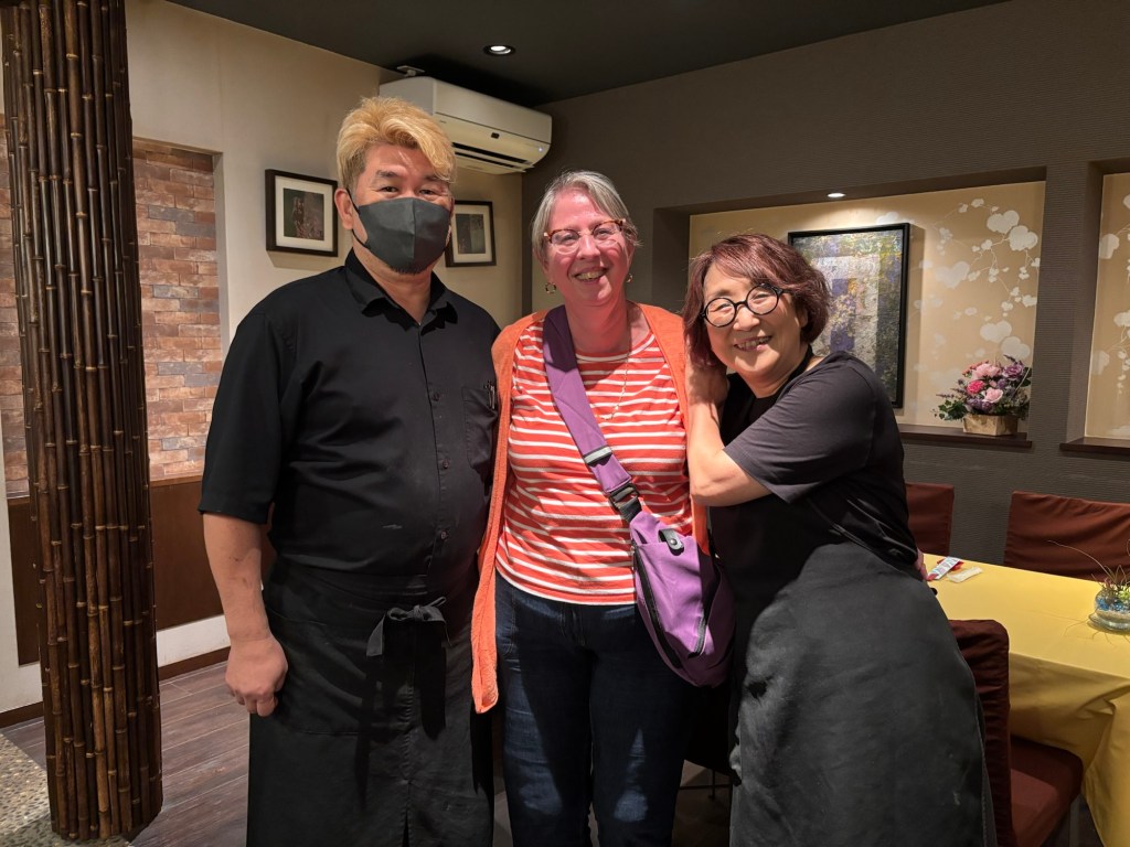 J’ai beaucoup échangé avec sa femme en français et en anglais, le chef étant aux fourneaux mais à la fin il est sorti de sa cuisine pour les photos et parfois pour expliquer un plat en français.