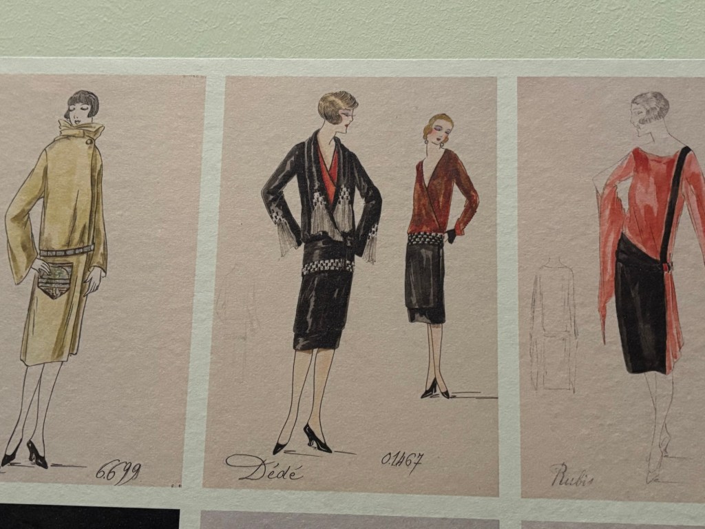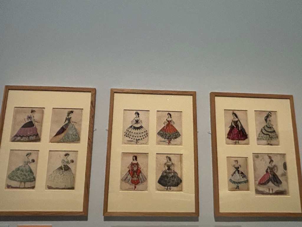 Tout est proposé à travers des tableaux de l’époque mais aussi à travers des esquisses de dessins de robes au crayon avec les couleurs devant s’intégrer dans les tissus.