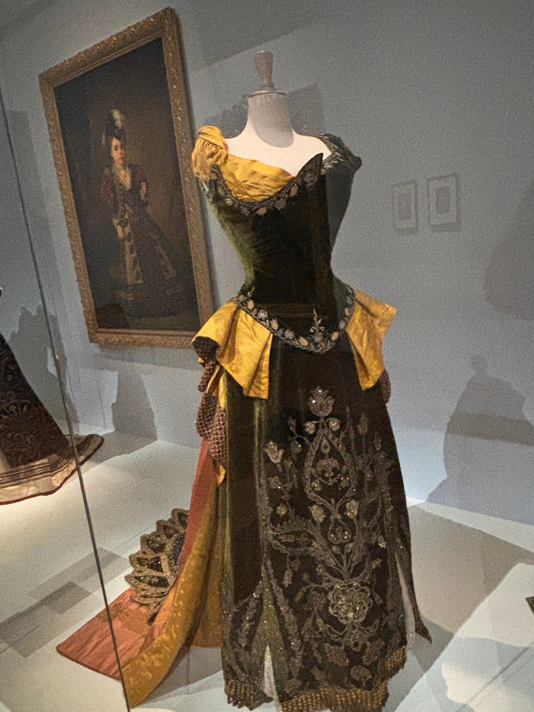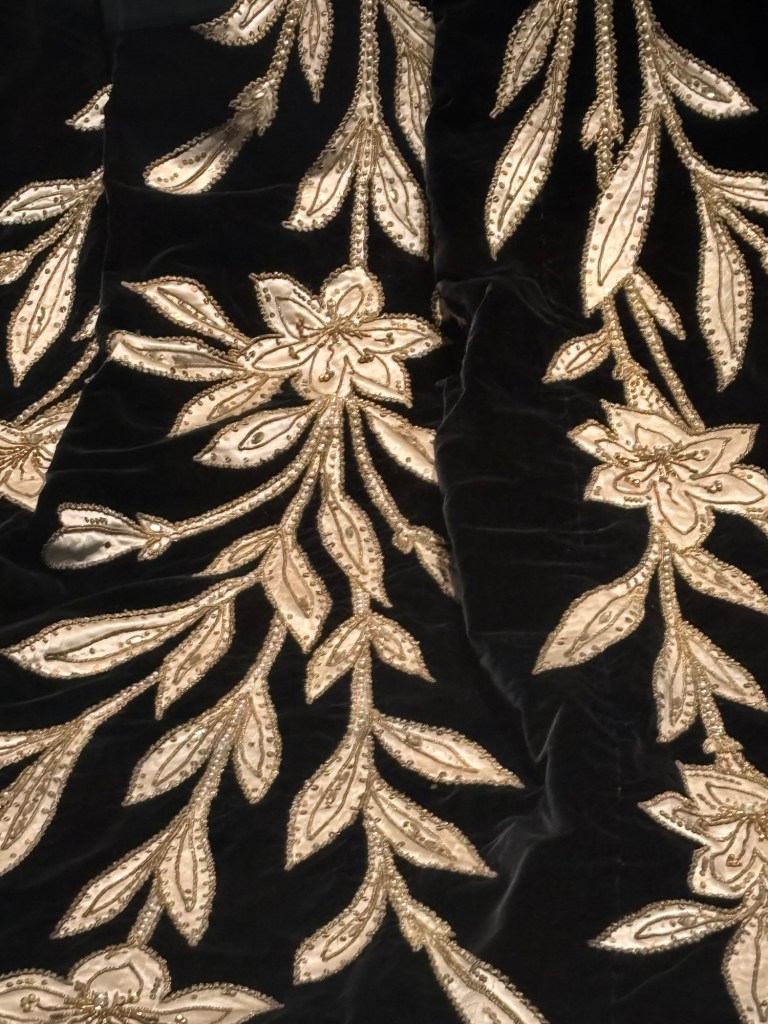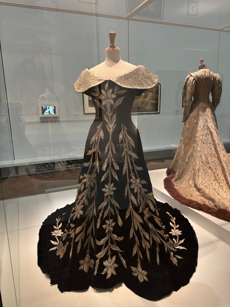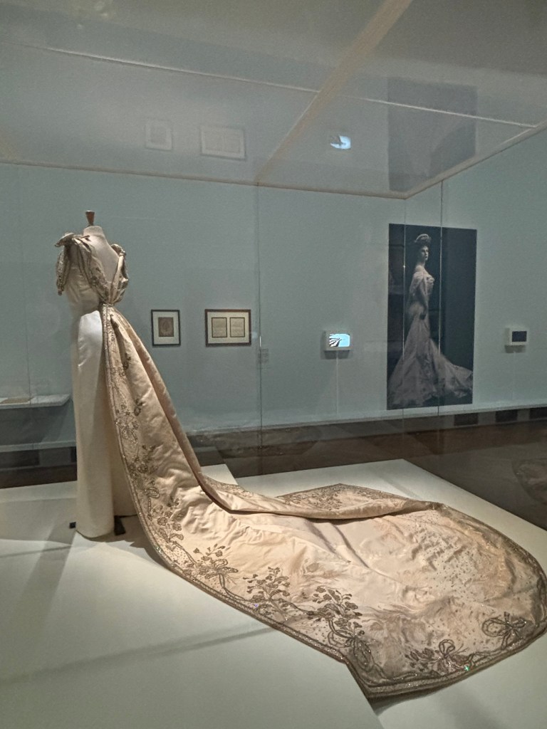 Ce qui est intéressant dans l’exposition c’est de voir l’évolution de la mode jusqu’en 1930, en passant des robes à crinolines portées par des princesses ou des reines, aux robes des années trente où la plus grande simplicité devient mode.