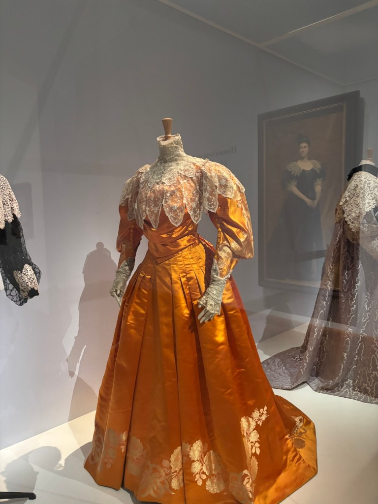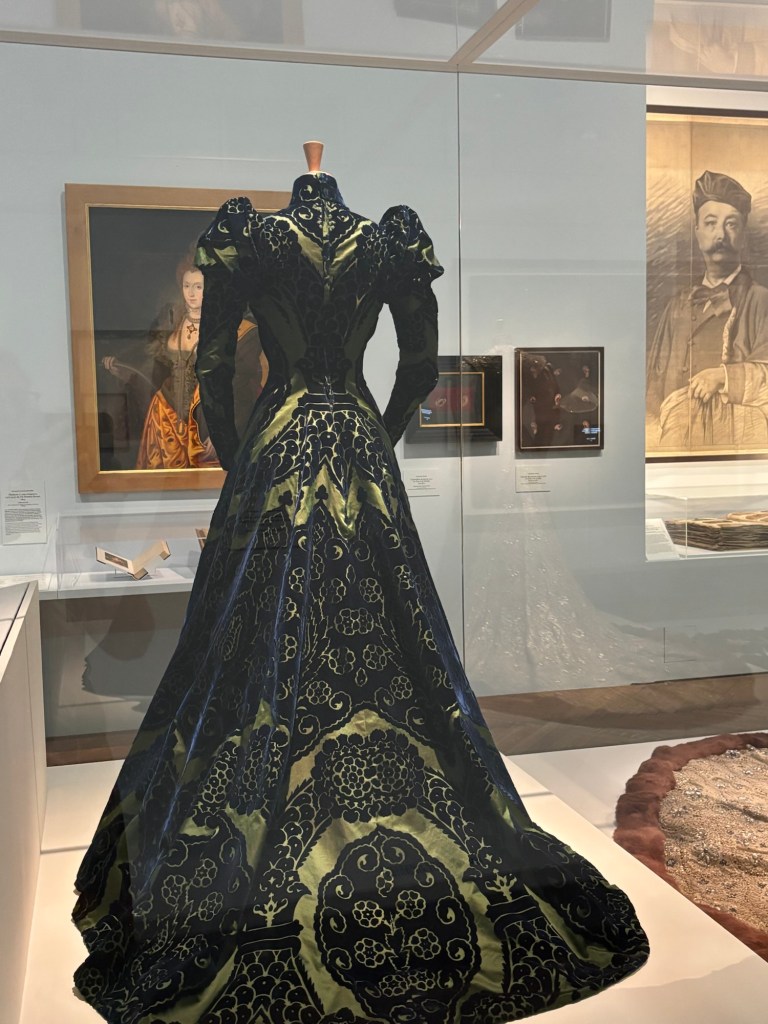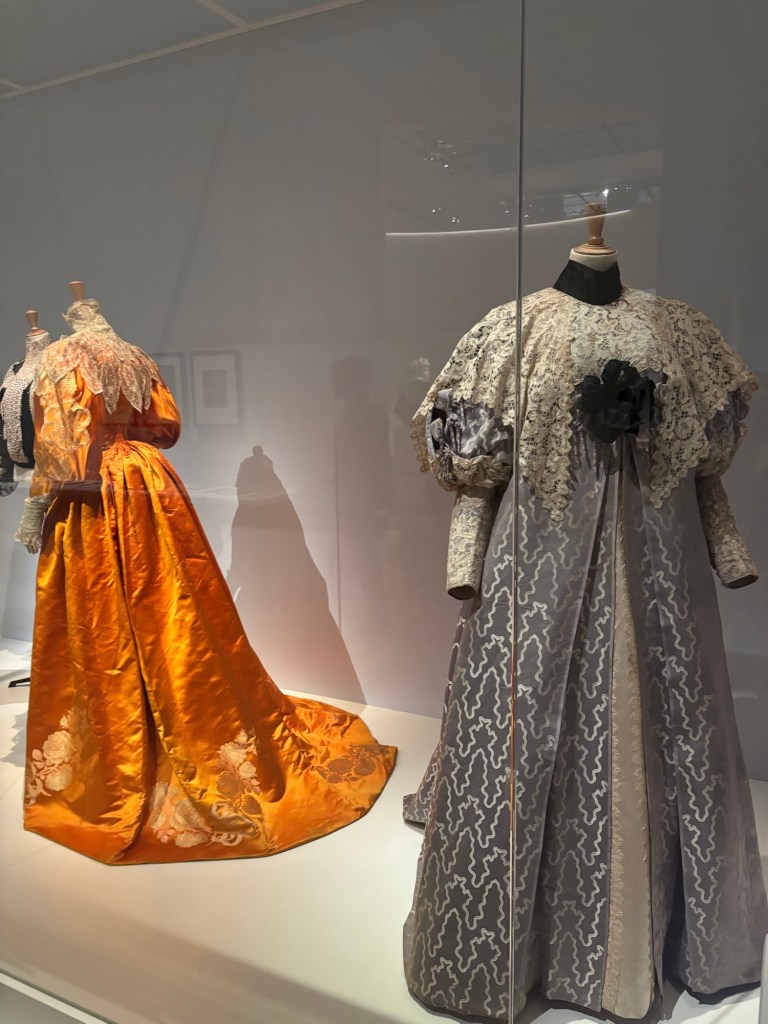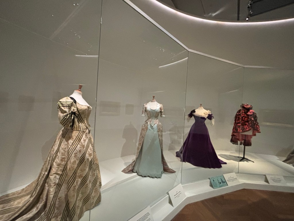 Ce qui est intéressant dans l’exposition c’est de voir l’évolution de la mode jusqu’en 1930, en passant des robes à crinolines portées par des princesses ou des reines, aux robes des années trente où la plus grande simplicité devient mode.