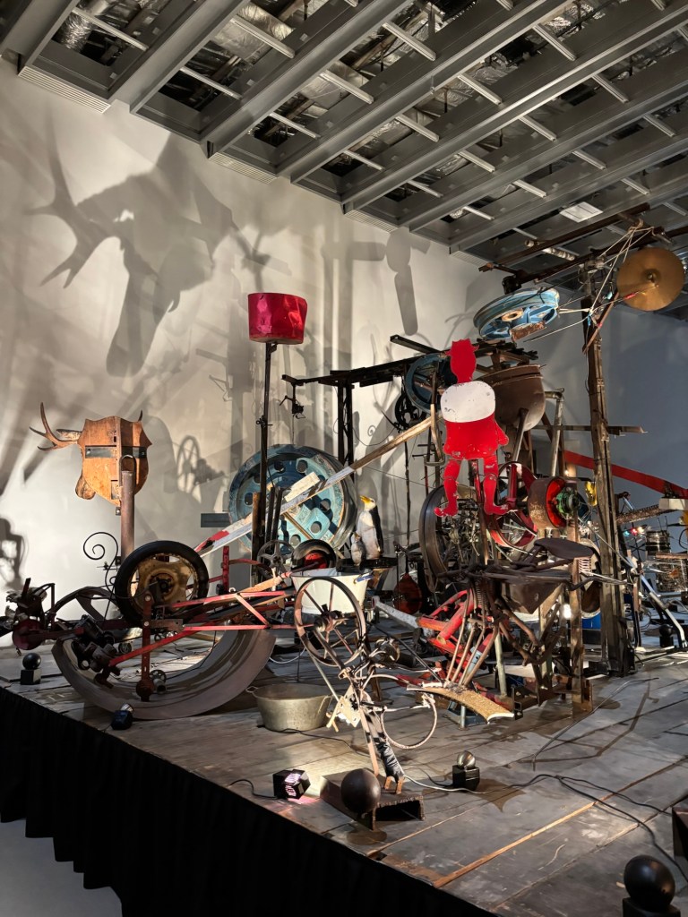 Puis on entre dans le monde de Tinguely fait de sortes d’automates qui bougent et donnent le la. Les objets montent, descendent et impriment un rythme. C’est Baluba.