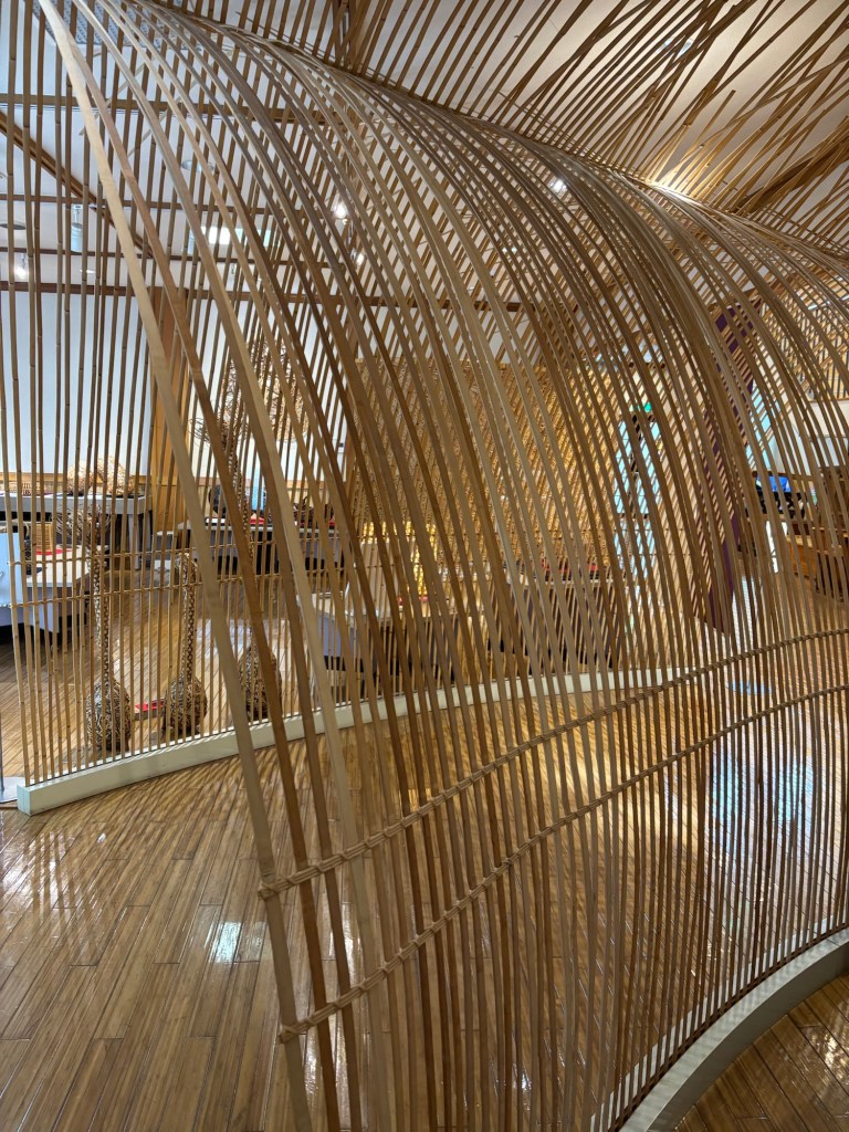 Il y a aussi une sorte d’arc fait de tiges de bambous arrondis qui permet d’entrer dans le musée et de découvrir les différentes œuvres et utilisation du bambou.