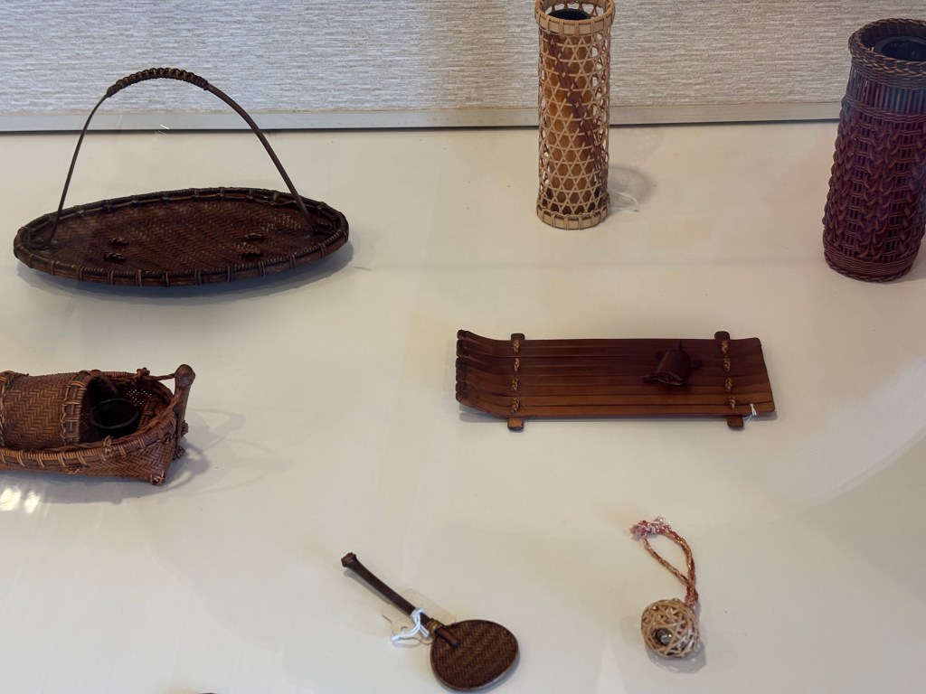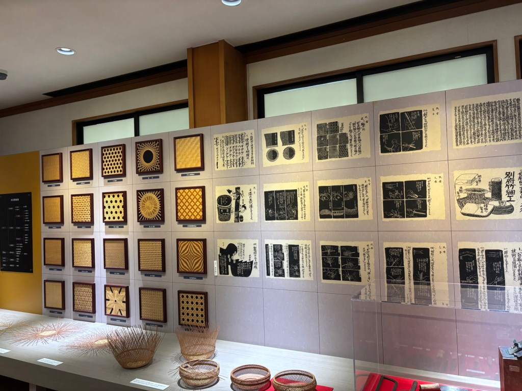 A un moment dans le musée on peut apprécier les différents cannages du bambou et les types de dessins réalisés au cours du temps. Il en existe six majeurs. Carré, hexagonal, octogonal, tapis, filet et base de chrysanthème. Chacun ayant un objectif particulier comme attraper des poissons, ou pour la ferme, pour porter des bagages ou pour la cérémonie du thé, entre autres.