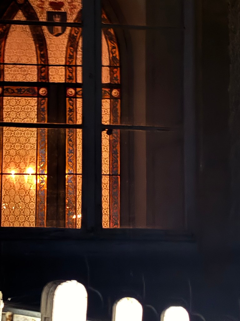 J’ai adoré revoir la pièce de la bibliothèque dans le fond avec ses vitraux qui se détachent du bâtiment en extérieur.