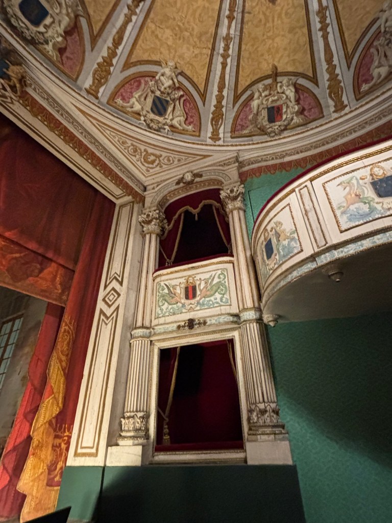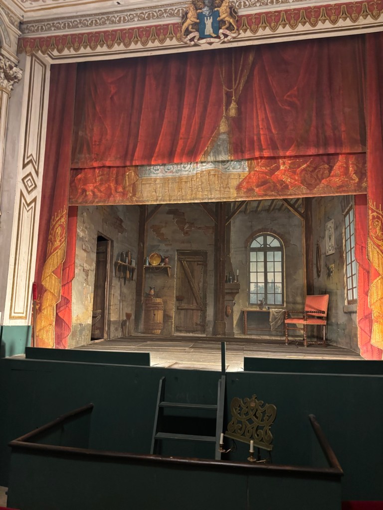 Et puis je suis allée dans le parc pour regarder le lac et le côté du château sur le jardin. Puis j’ai fini par le théâtre dont le sol est en pente. Très joli endroit qui a été rénové il y a trois ans.