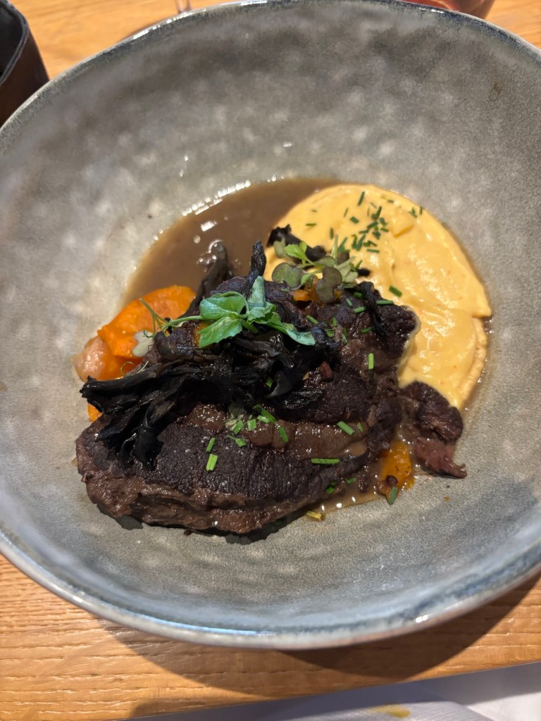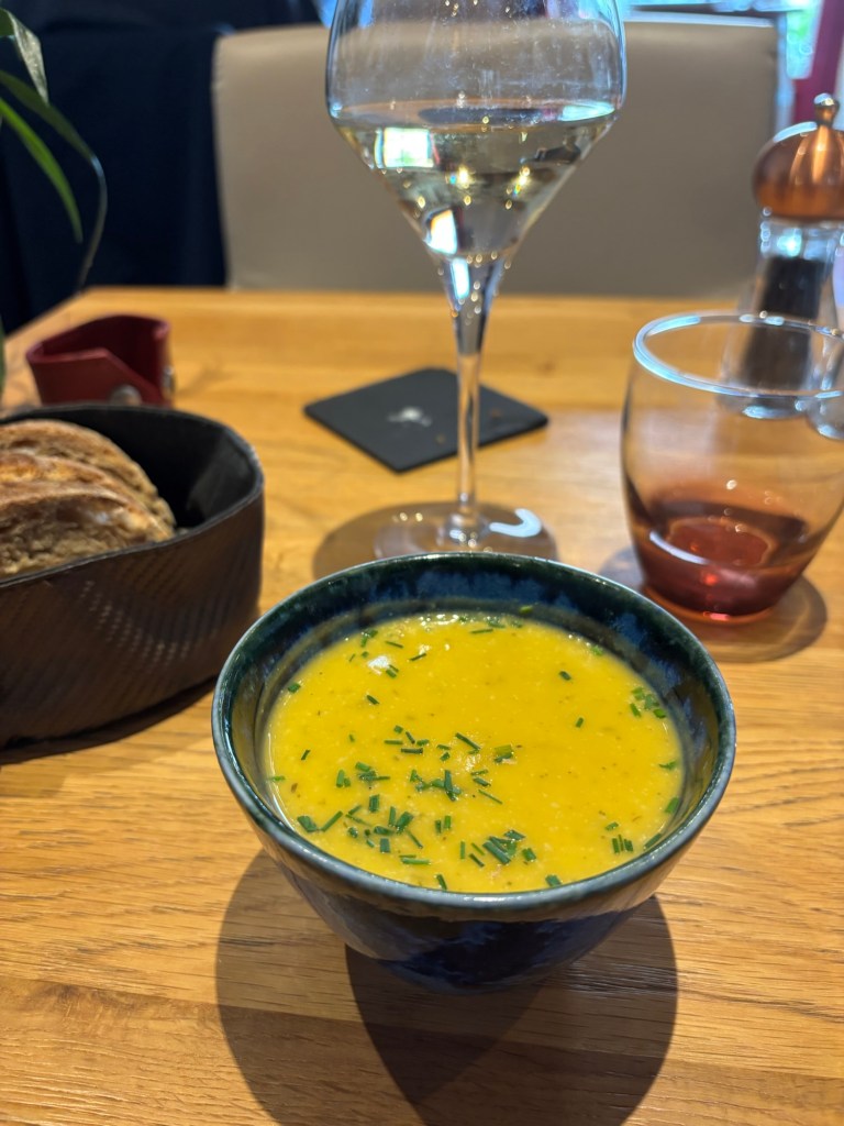 L’Auberge de Gourdon vous met en appétit et vous dégustez une soupe de potiron, une joue de bœuf tendre à souhait et une poire au vin qui vous mettent in the mood pour une balade digestive.