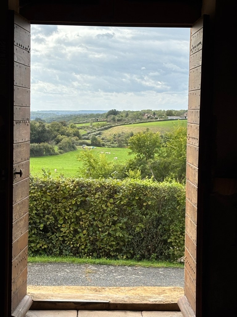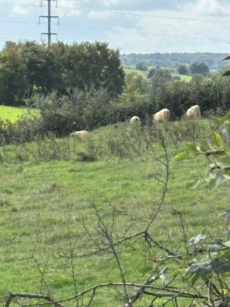 Une fois la panse bien tendue, je suis partie me dégourdir les jambes et profiter du beau temps qui éclairait les champs et faisait ressortir le vert des prés. Les vaches broutaient et la nature ondoyait. Parfois elles montraient leurs derrières aux voyageurs comme pour montrer que l’herbe était beaucoup plus importante que le reste. D’autres allongées sur le sol dormaient et digéraient. D’autres très curieuses se rapprochaient de la palissade pour voir l’inconnue se baladant. Les vaches sont un spectacle à elles seules ! Je ne m’en lasse pas !