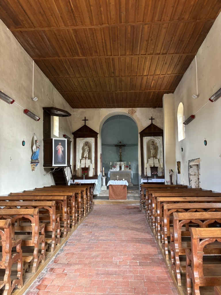 Tout d’abord le restaurant qui le midi offre trois plats une entrée, un plat et un dessert. Du restaurant on peut admirer l’église qui est souvent fermée. Pour une fois j’ai pu la visiter et j’ai été un peu déçue par l’intérieur qui normalement dans cette région offre de belles fresques.