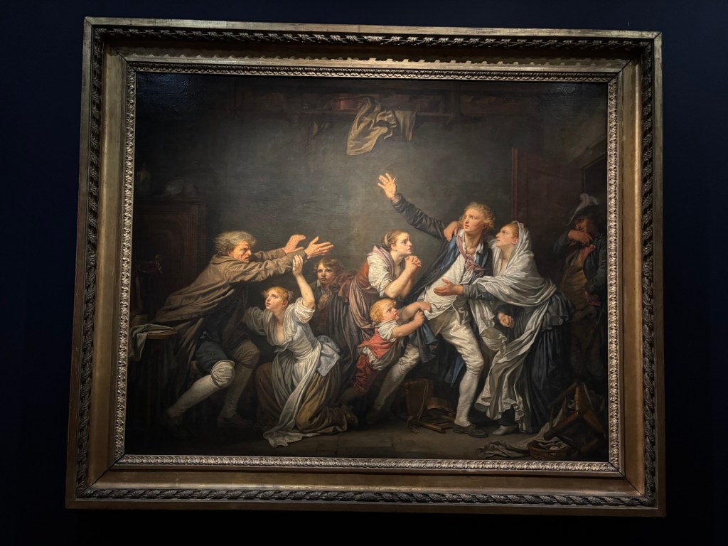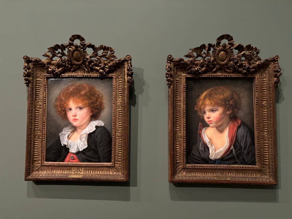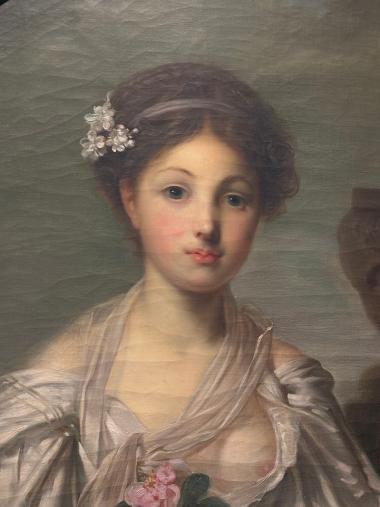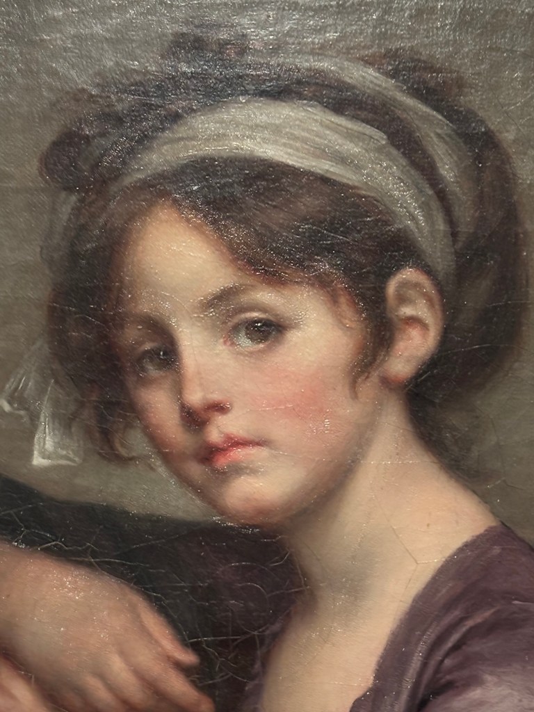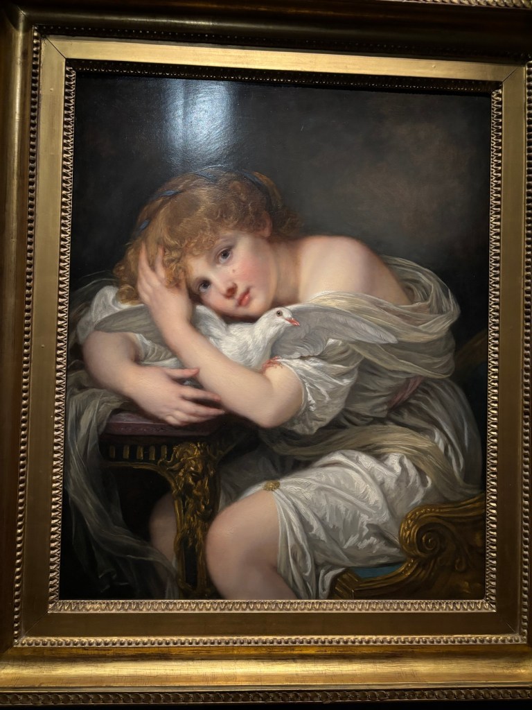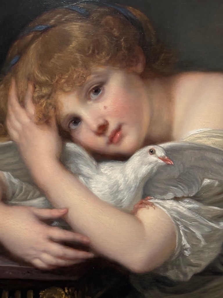 Puis on repasse aux portraits chers à Greuze, sur des jeunes filles aux oiseaux morts où la tristesse s’affiche. Ou bien la jeune fille à la colombe qui évoque la pureté et la virginité. Chaque détail est peint avec une telle fraicheur et une telle réalité. On y ressent parfaitement les sentiments de joie ou de morbidité.