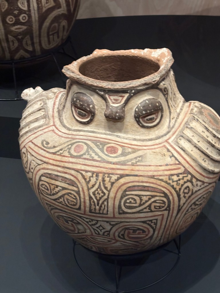 De magnifiques poteries m’émerveillent et j’ai toujours l’impression de voir des équivalents de celles réalisées par la Mayas ou bien les Chinois. Là on découvre des oiseaux sorte de hiboux.