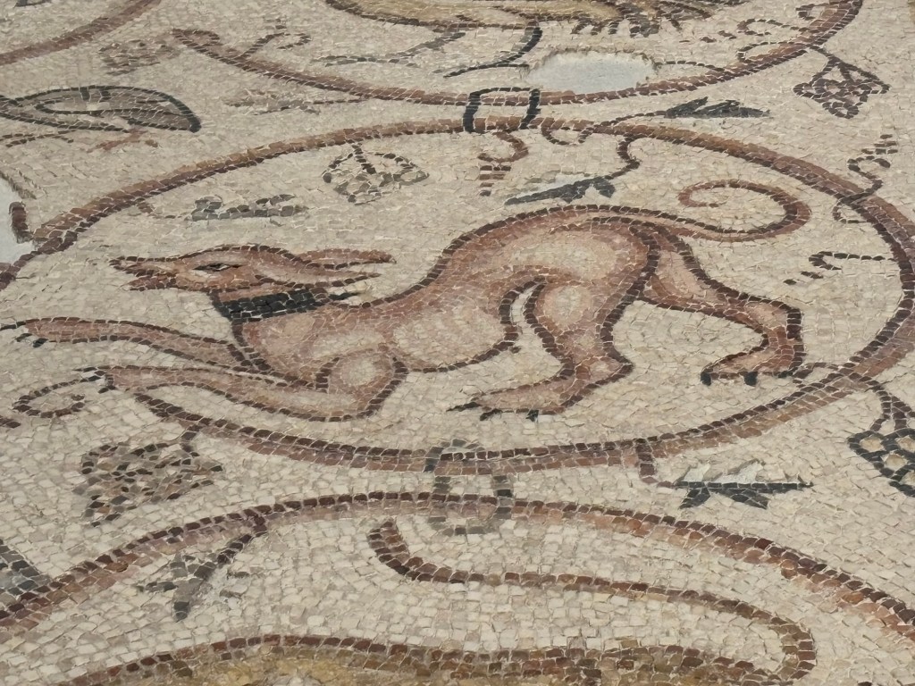 Rien qu’en regardant les mosaïques au sol et la beauté des dessins d’animaux comme ce fauve ou ce chien ou bien les représentations de la vie quotidienne avec les vendanges.