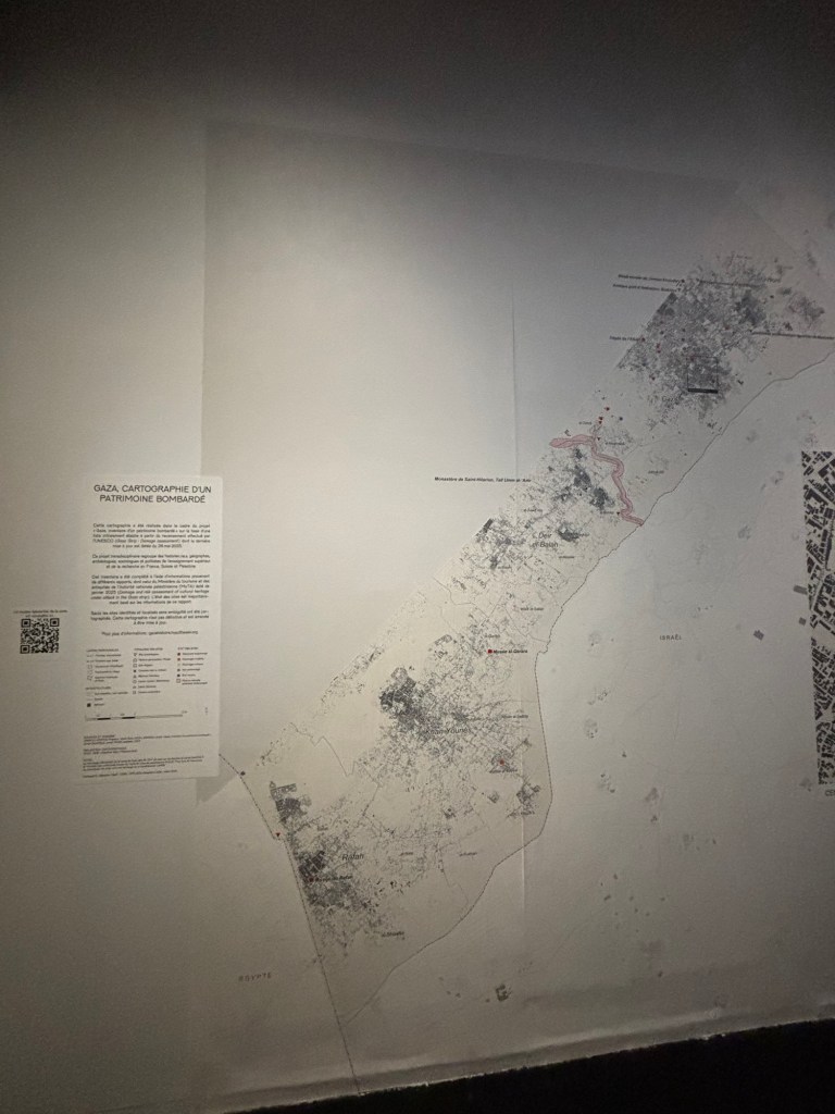 Sur une carte est représentée d’où proviennent toutes les œuvres exposées et surtout nous font parcourir le monde d’il y a 5000 ans. On comprend alors l’importance de ces lieux où Rome, Byzance, la Grèce, la Perse, l’Assyrie, la période musulmane se sont rencontrées, superposées pour se mélanger. Les peuples ont pu s’assimiler, se mélanger mais surtout les patrimoines existants ont disparu non seulement au début du 20 e siècle avec les guerres avec les Anglais mais surtout actuellement avec les divers bombardements dans le conflit israélo-arabe.