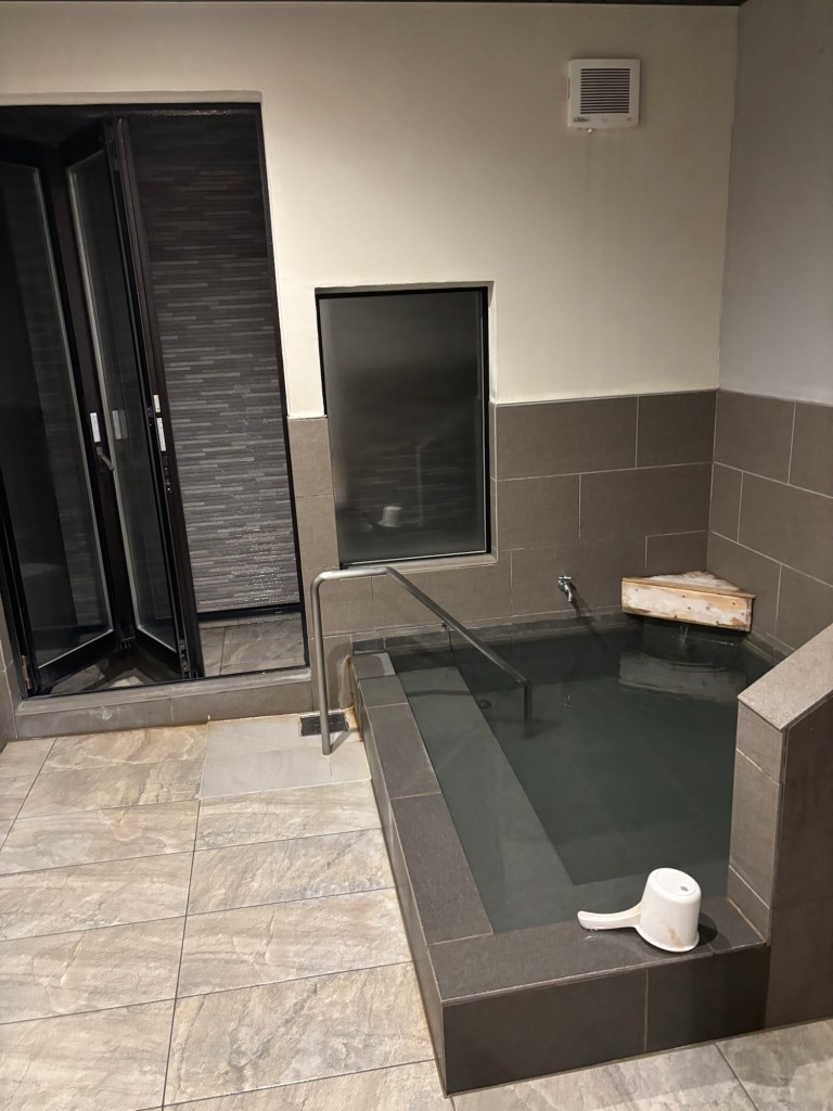Arrivée sous une pluie fine au ryokan, j’ai trouvé la ville d’Aso d’un triste à mourir. Heureusement il y avait un onsen pour se délasser et détendre ses muscles et endormir son esprit !