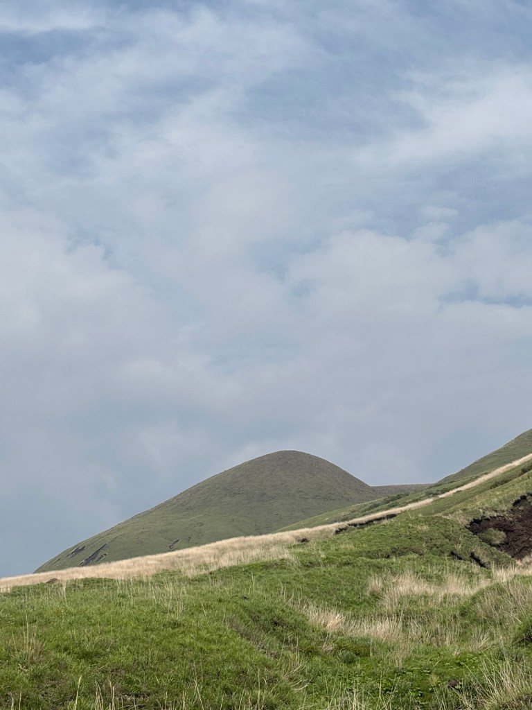 Autour des collines soulevées et herbeuses – une sorte de Massif central en France !