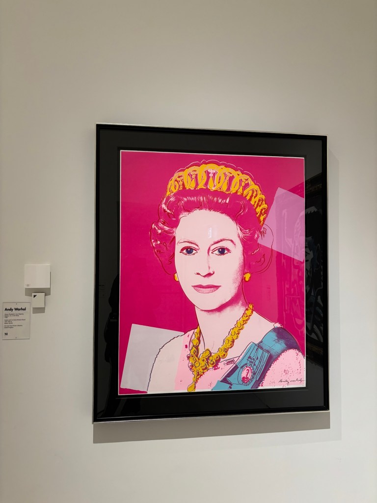 Andy Warhol et la reine mère qu’il a prise sous toutes les couleurs et qui nous la rend sympathique.