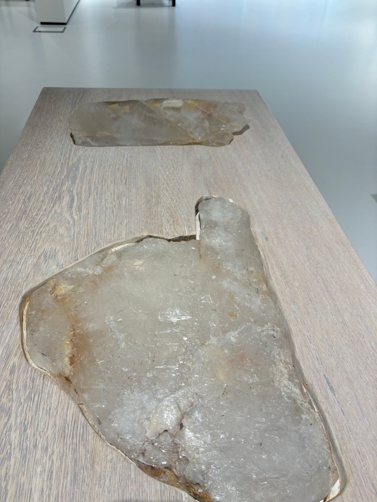 A l’étage des œuvres de Marina Abramovic vous tendaient les bras pour vous allonger sur des tables de bois avec des gros quartz pour être en pleine conscience et bénéficier de bonnes ondes.