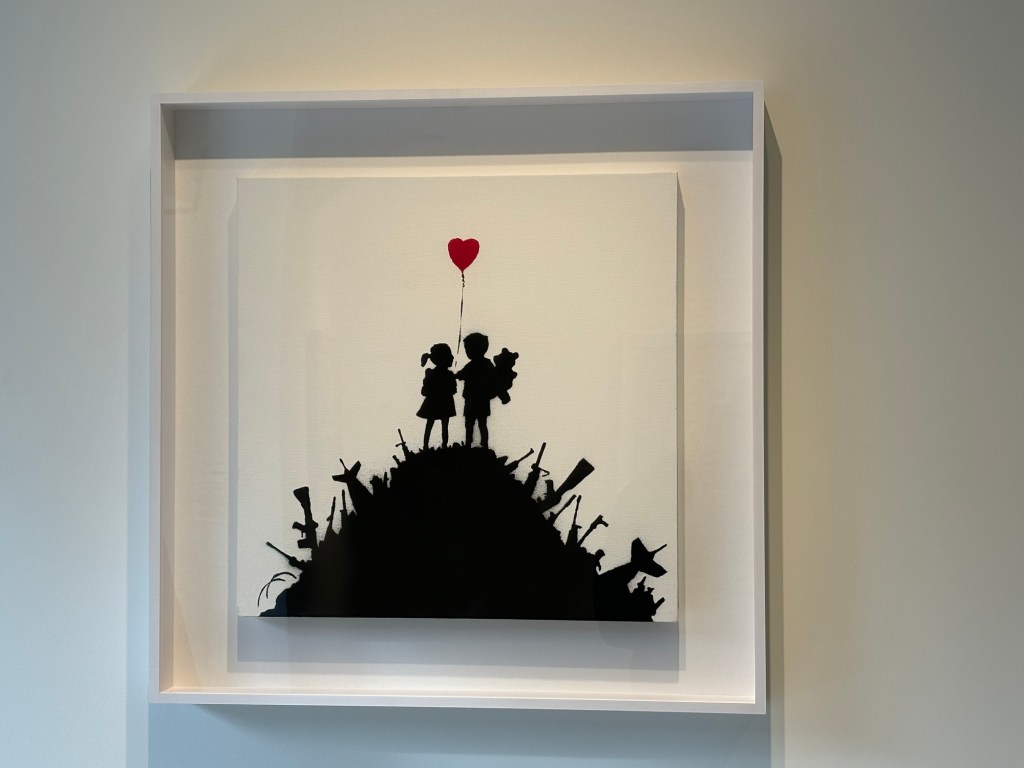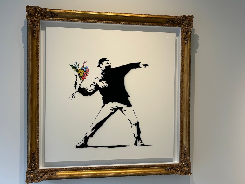 Bansky et ses enfants qui prônent l’amour et cet homme qui est lanceur de bouquets de fleurs.
